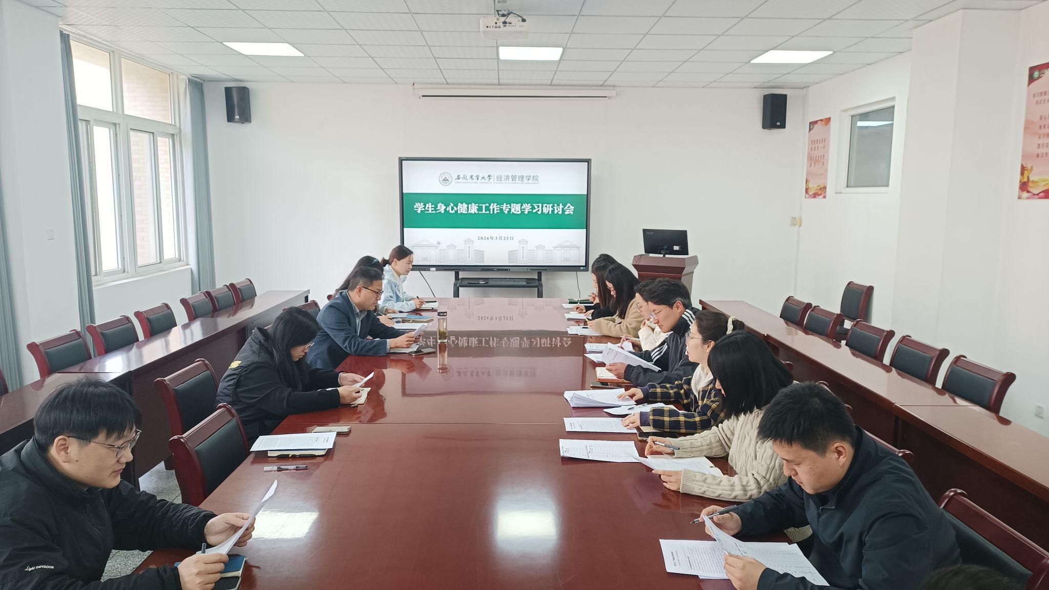 本网讯 为深入落实“健康第一”教育理念,切实护航学生身心健康成长。3月25日下午,经济管理学院在经管楼304会议室召开学生身心健康工作专题学习研讨会。会议由学院党委副书记、纪委书记周涛主持,全体辅导员参会。