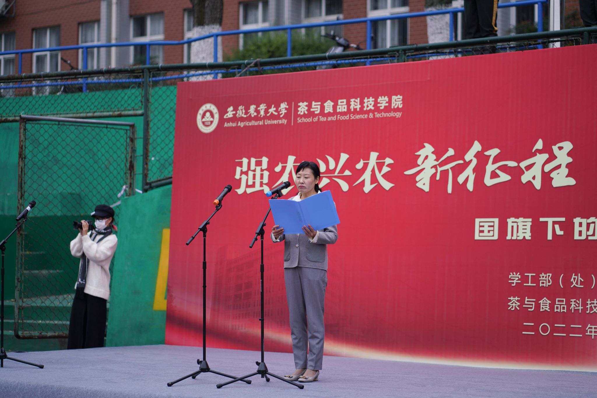 本网讯 11月21日,茶与食品科技学院举办“强农兴农新征程 青春献礼二十大”升旗仪式暨“国旗下的公开课”主题教育活动。校直部门领导、老师,学院党政领导、学院专兼职辅导员、2022级新生参加本次主题教育活动。活动由学院院长李大祥主持。