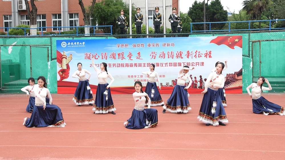 随后,来自大学生舞蹈团的学生代表,用一曲欢快的舞蹈《日出》,深情演绎了安农学子尊崇劳动、热爱劳动的精神风貌;来自教师代表们的诗朗诵《劳动者之歌》,讴歌了每一位勤劳的安农人,用点滴平凡汇聚成立德树人、服务育人的生动实践。