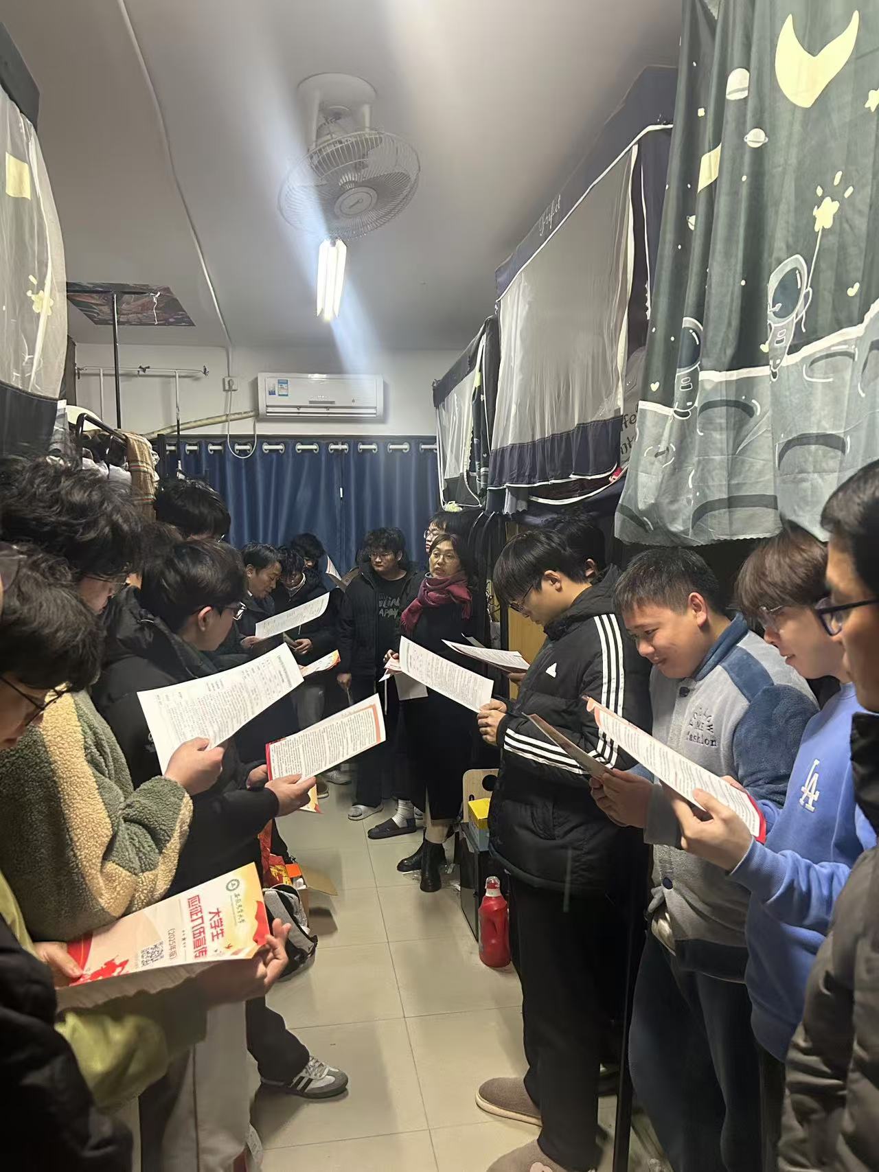 老师们携带详尽的宣传资料,走进学生宿舍,结合身边的真实案例,向同学们讲述了军旅生活的精彩与意义。通过向学生们细致讲解征兵的基本要求、报名步骤、优惠政策以及军旅生活等多方面信息,使大家对征兵有了更全面和深入的认识。