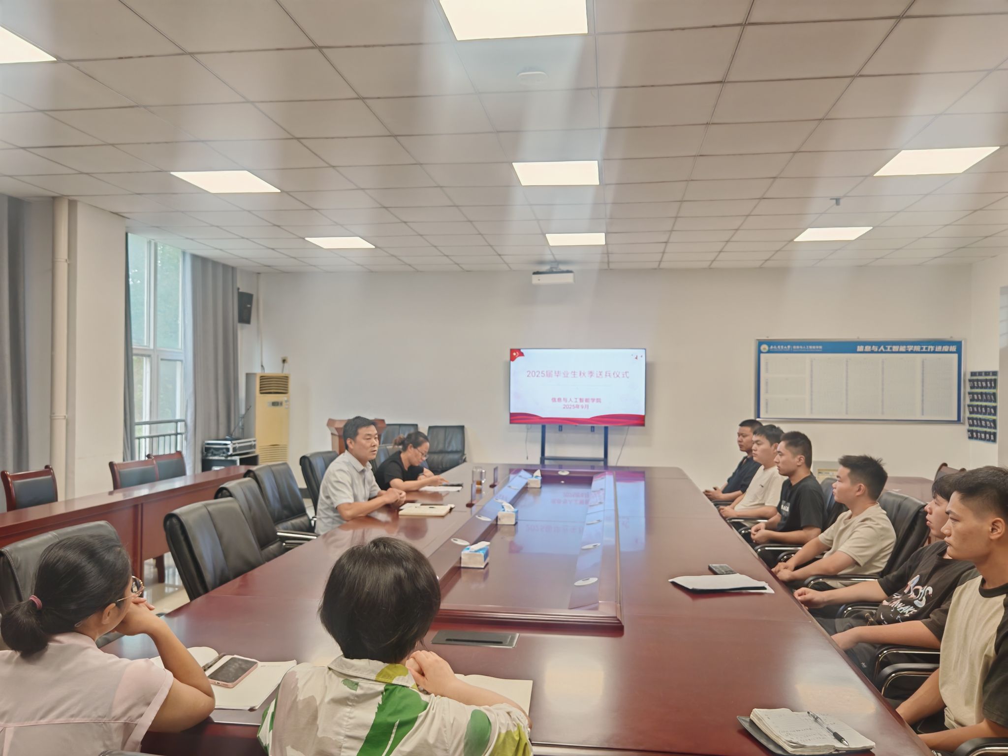 9月3日下午,学院召开2025年秋季毕业生入伍欢送会。学院党委书记吴辰华、毕业班辅导员、全体入伍毕业生参会。学院党委副书记、纪委书记李南飞主持会议。