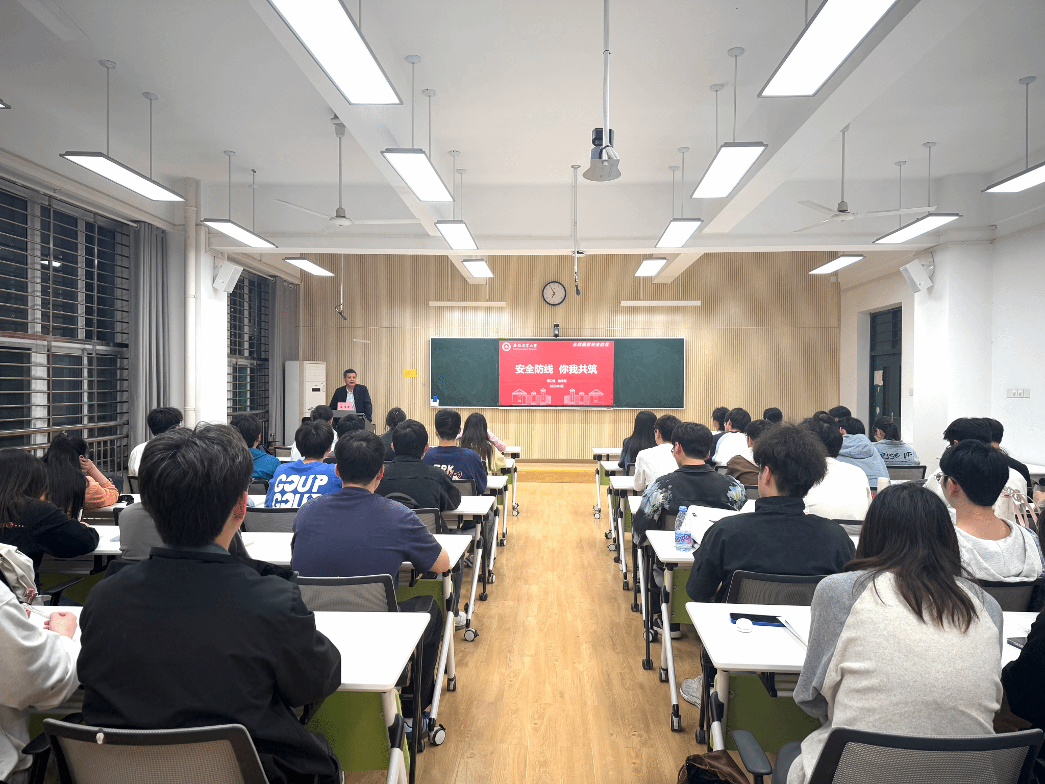 本网讯 2025年是习近平总书记提出总体国家安全观11周年,是《国家安全法》颁布实施10周年。4月24日晚,校保卫处副处长徐传军应邀围绕“全民国家安全教育 走深走实十周年”在学院305教室开展主题宣讲。学院党委副书记、纪委书记李南飞主持宣讲会,党员发展对象聆听宣讲。