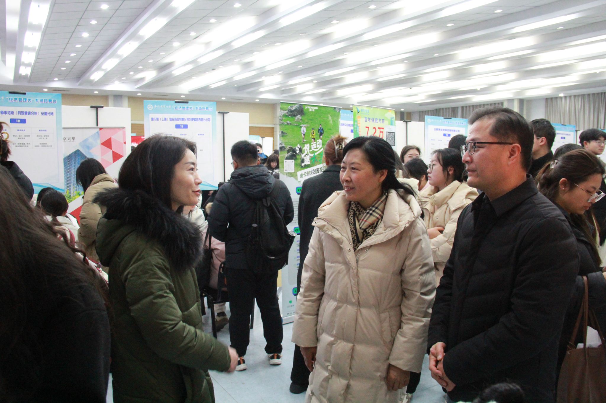 本网讯 为进一步拓宽经济管理类毕业生就业渠道,为2025届毕业生搭建高质量的就业平台,3月4日上午,我校在欣苑四楼多功能厅举办2025届经济管理类毕业生专场招聘会。校党委常委、副校长李红莅临现场指导工作,校党委研究生工作部、党委学生工作部及经济管理学院主要负责人,2025届毕业班辅导员及毕业生参加招聘会。