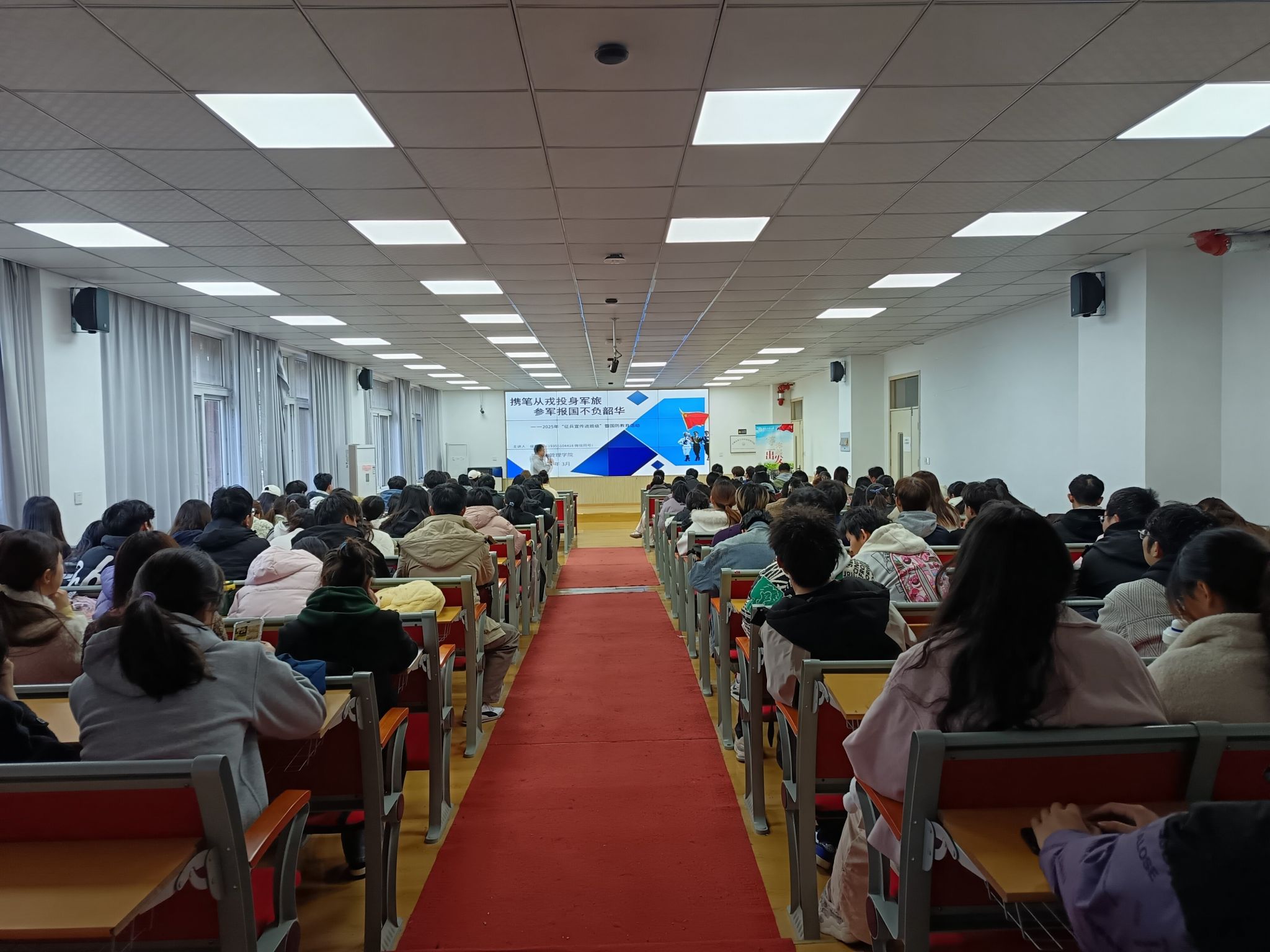 本网讯 为积极响应国家征兵号召,鼓励学院青年学子投身国防事业,经济管理学院于3-6月组织开展了“征兵宣传进班级”活动,为学院适龄青年学子带来全方位的应届毕业入伍政策解读。
