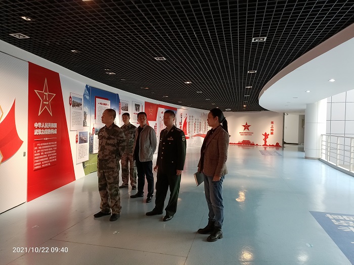 本网讯 10月22日,校党委武装部副部长刘柳带队前往安徽建筑大学调研该校“两站两服务”建设情况。合肥警备区国防动员处廖惟宇处长、陆勤超参谋,包河区人武部朱宏刚部长等兵役机关领导也莅临指导。建筑大学人武部部长汪翼湧陪同调研。