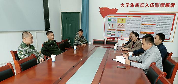 调研中,汪翼湧部长详细介绍了该校近年来征兵工作开展情况以及“两站两服务”试点建设情况,并就试点建设工作经验和典型做法向与会领导们做了分享。兵役机关领导也就试点工作的建设成效给予了肯定和认可,并对我校即将开展的“两站两服务”建设工作提出了宝贵建议和意见。