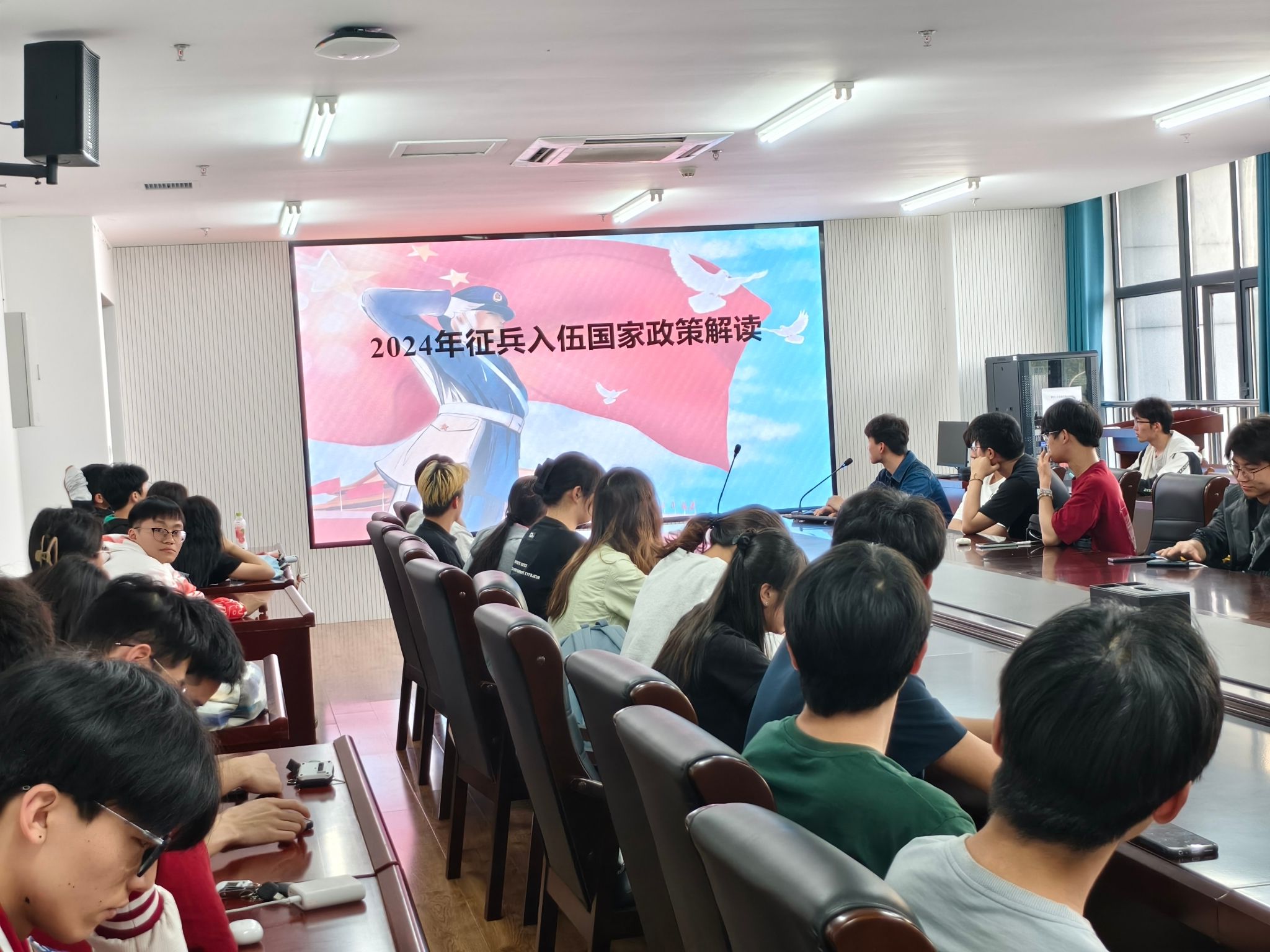 本次讲座不仅使我院2025届有应征入伍意向的学生进一步了解国防、军队建设情况以及征兵政策,也激发了他们的爱国热情和家国情怀,是国防教育、思想政治教育、爱国主义教育和就业指导的有机结合。(文/周毅 图/周毅 编辑/周毅 预审/范宇 审核/冯峰)