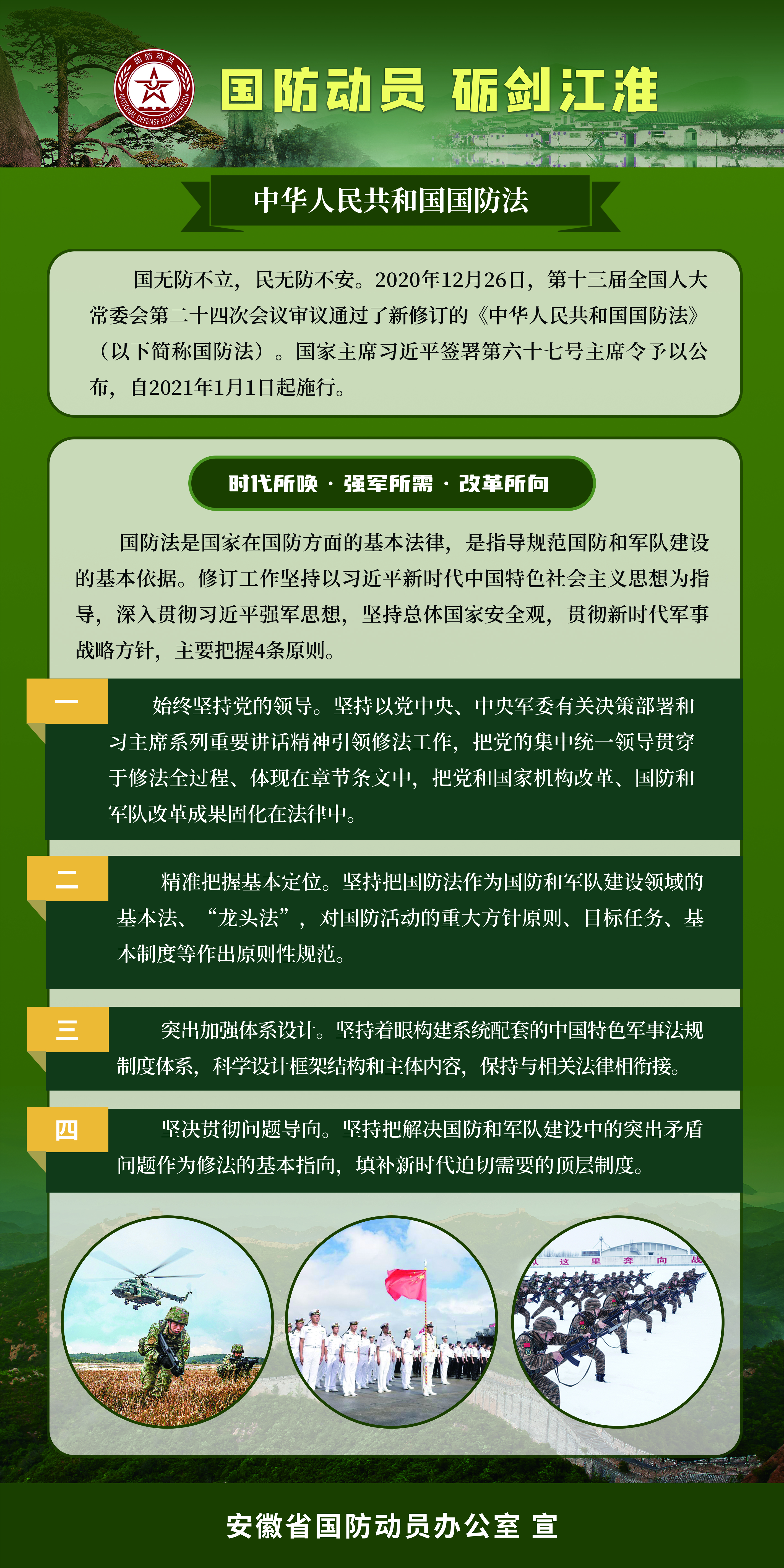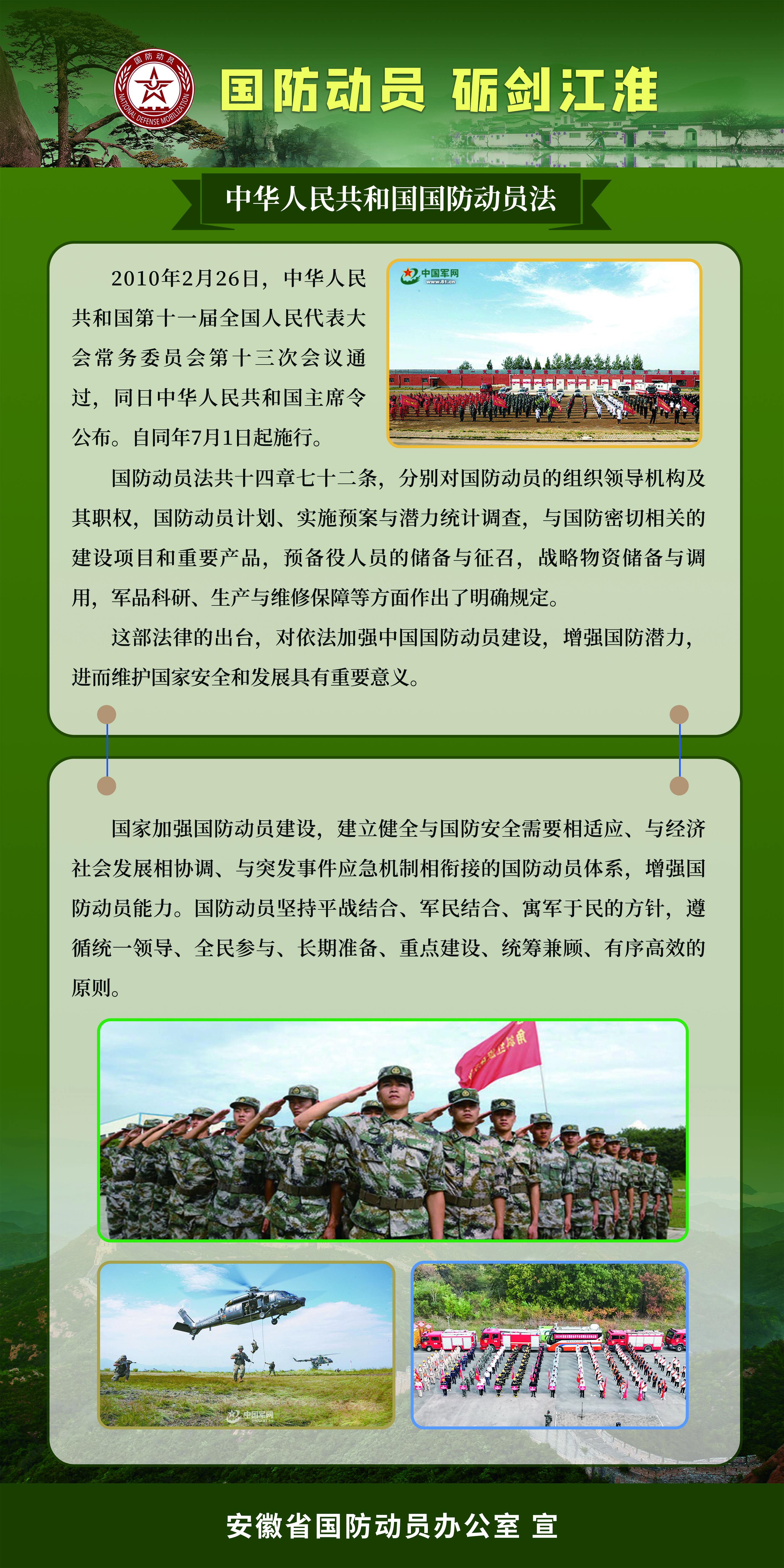 上一条:中华人民共和国军事设施保护法 下一条:“国防动员 砺剑江淮”全省国防动员法律法规