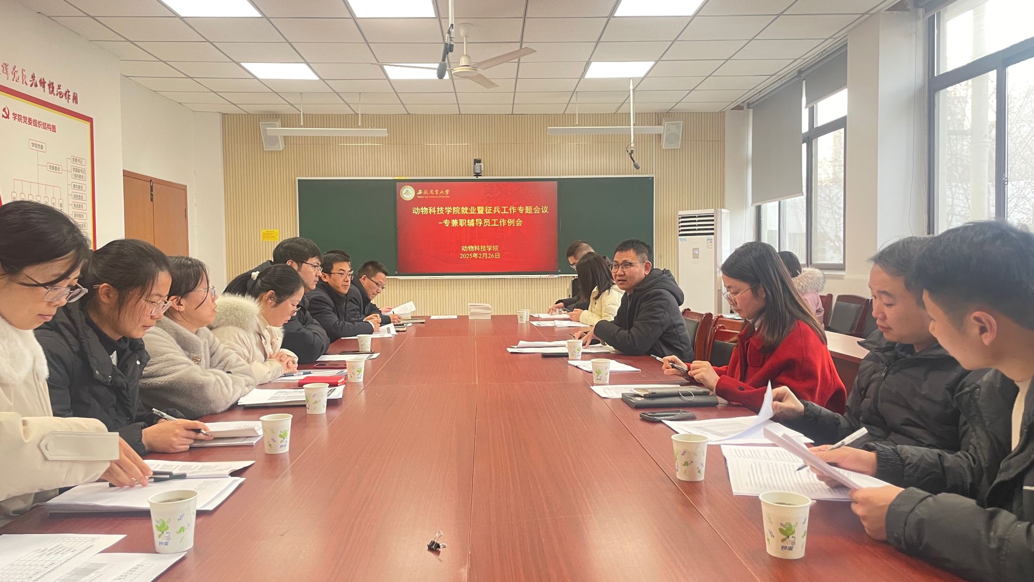 本网讯 2月26日,动物科技学院在动科楼306会议室召开就业暨征兵工作专题会议。学院全体专兼职辅导员、班主任参加本次会议。会议由学院党委副书记卢伟主持。