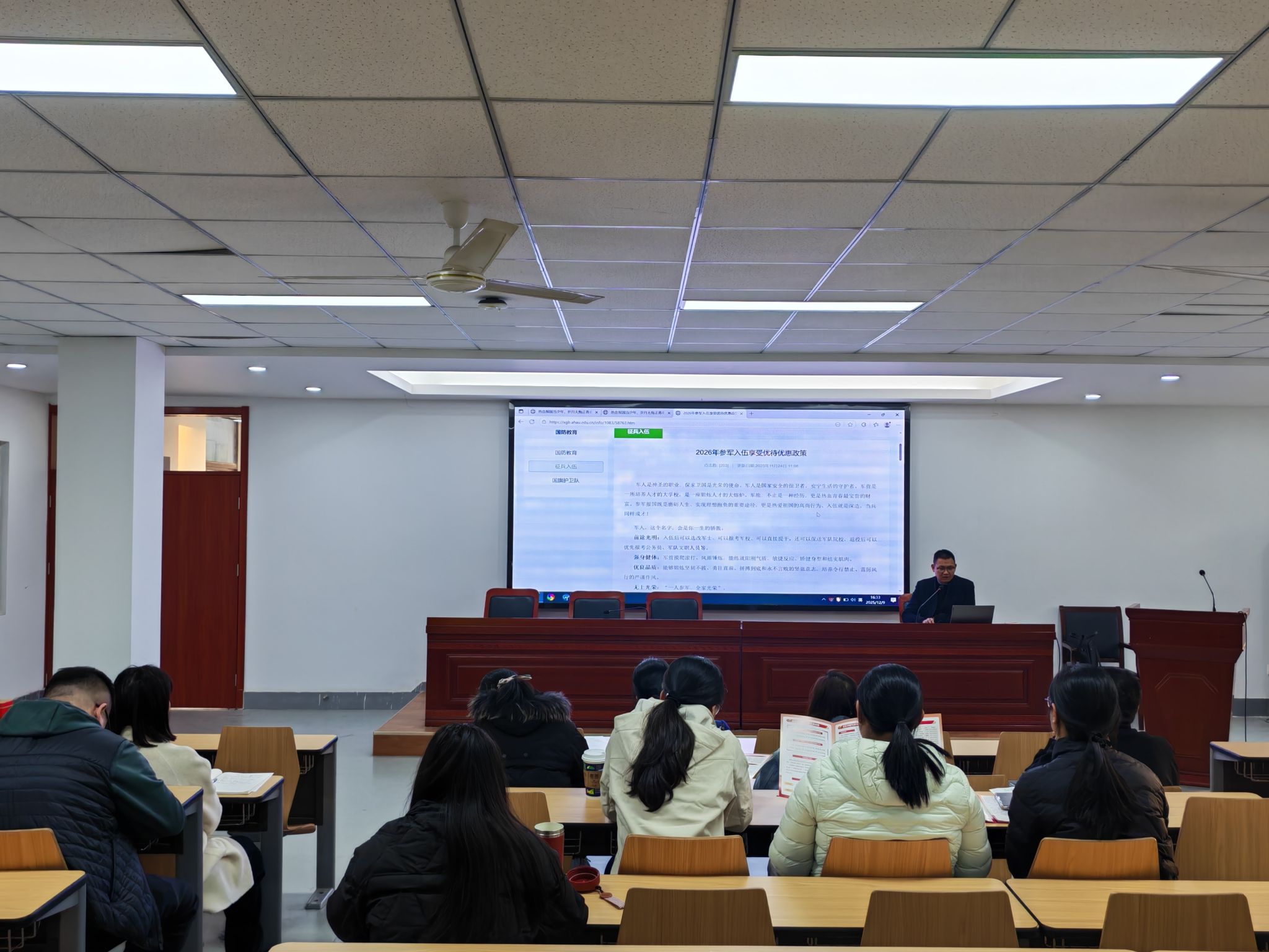 上一条:茶业学院开展“铭记‘一二・九’ 奋进新征程”主题活动 下一条:携笔从戎抒壮志 材化学子筑国防——材料与化学学院征兵政策宣讲会顺利开讲