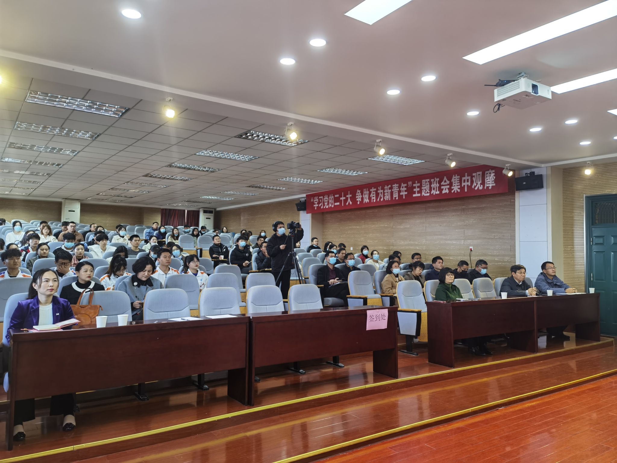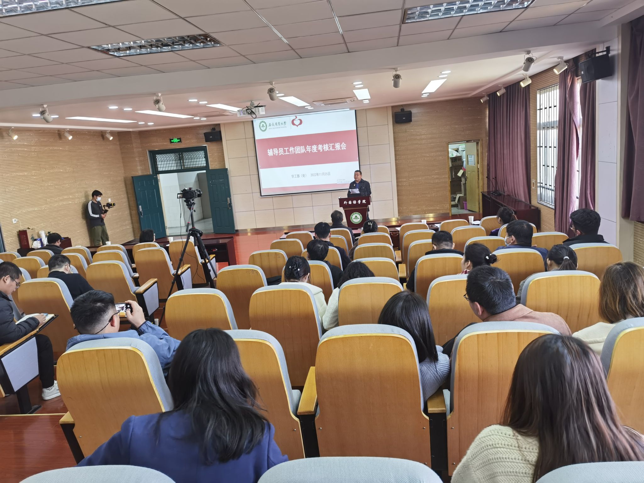 本网讯 11月25日,我校在外语楼502开展“学习党的二十大,争做有为新青年”主题班会集中观摩和辅导员工作团队年度考核汇报会。校党委副书记裴树东出席,学工部(处)负责同志、各学院党委副书记和专职辅导员参加。