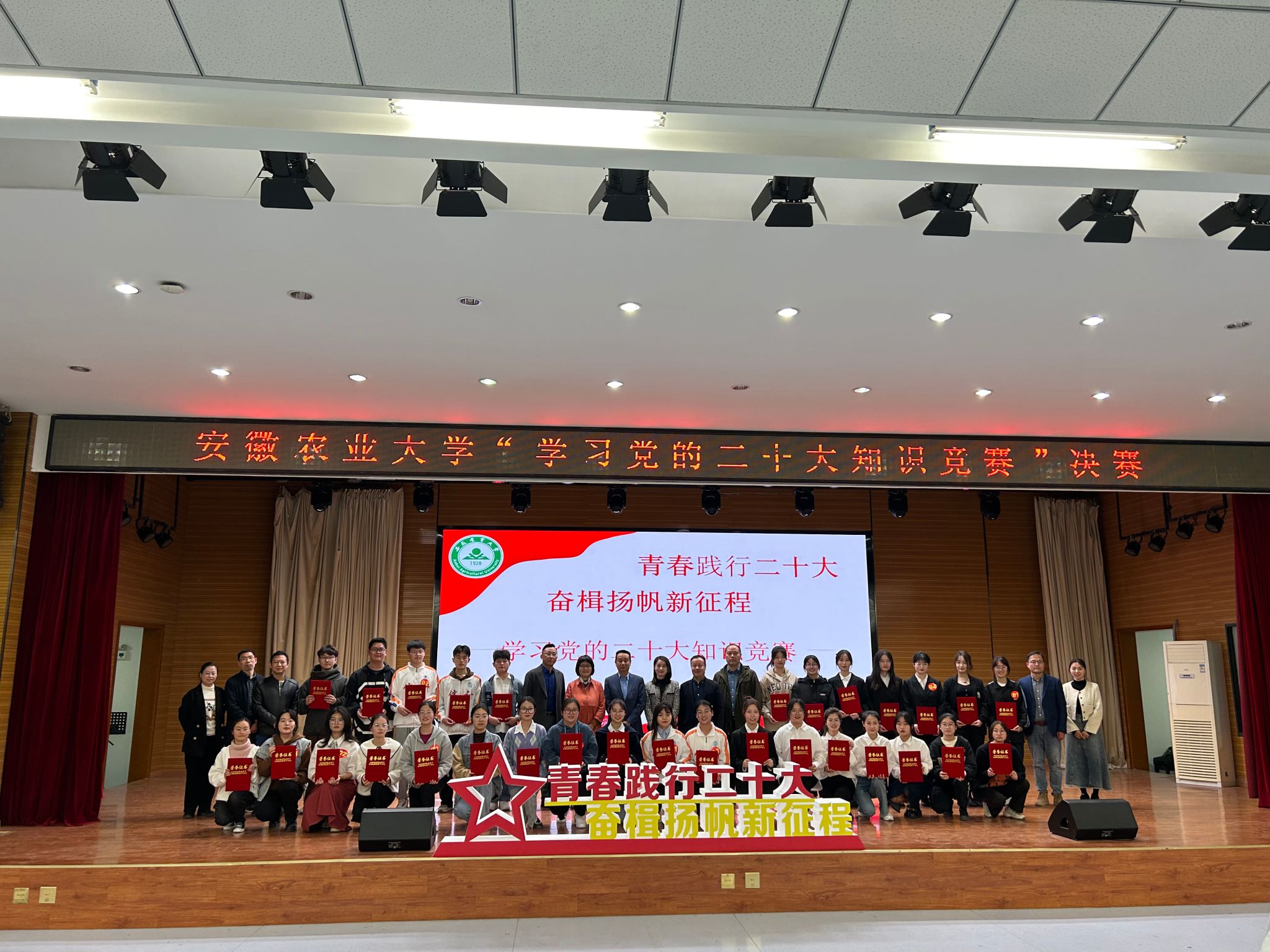 经过预赛、复赛的选拔,共有7支代表队进入决赛现场。决赛以“青春践行二十大,奋楫扬帆新征程”为主题,分为必答题、抢答题、风险题三个环节。比赛中,选手们斗志昂扬、沉着应战,上演了一场精彩的脑力与知识的较量,现场掌声如潮、精彩纷呈。互动环节,观众热情参与、踊跃抢答,现场气氛热烈。经过激烈角逐,农学院代表队斩获一等奖,马克思主义学院、资源与环境学院代表队荣获二等奖,生命科学学院、园艺学院、信息与计算机学院和植物保护学院代表队获得三等奖。结合预赛的参与率、复赛的平均分和决赛的情况,园艺学院、农学院、工学院、信息与计算机学院、人文社会科学学院获得优秀组织奖。在预赛阶段,全校共有12066名学生通过易班参加比赛,其中有84个班集体100%参与,根据参与班级的平均分,最终2021级植物生产类(I)-8班等9个班集体获得班级集体奖。参会领导现场为获奖集体和个人颁发了证书和奖品。