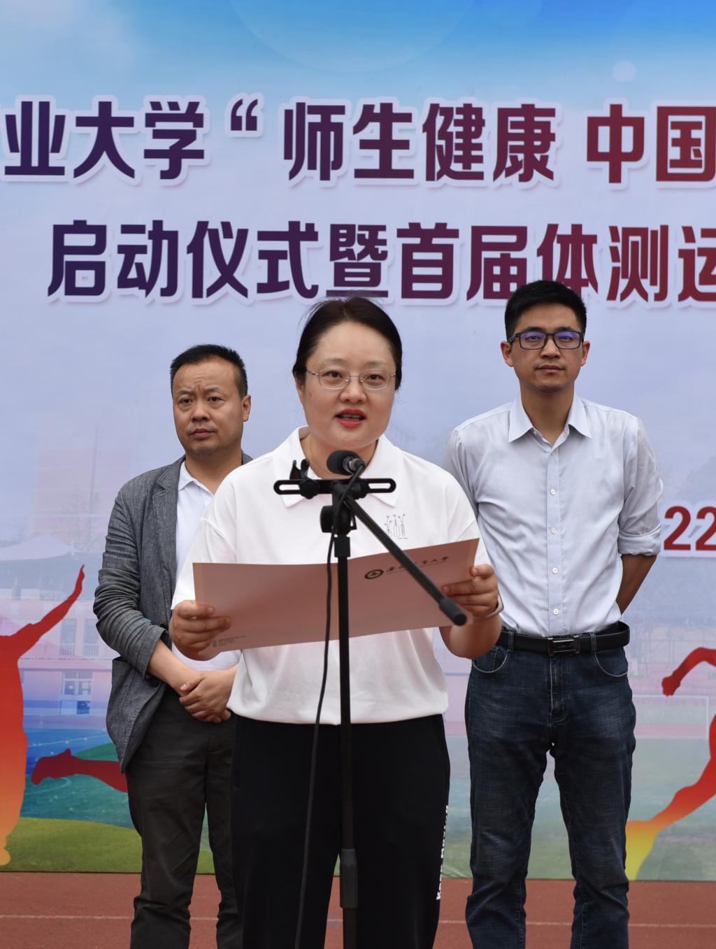本网讯 5月22日上午,校党委常委、副校长李红主持召开2021年“师生健康 中国健康”主题健康教育活动启动仪式暨首届体测运动会开幕式。校党委副书记裴树东出席开幕式并致辞。“师生健康 中国健康”主题健康教育活动和首届体测运动会领导小组各成员单位负责人,各学院分管学生工作负责人和学生代表参加了开幕式。