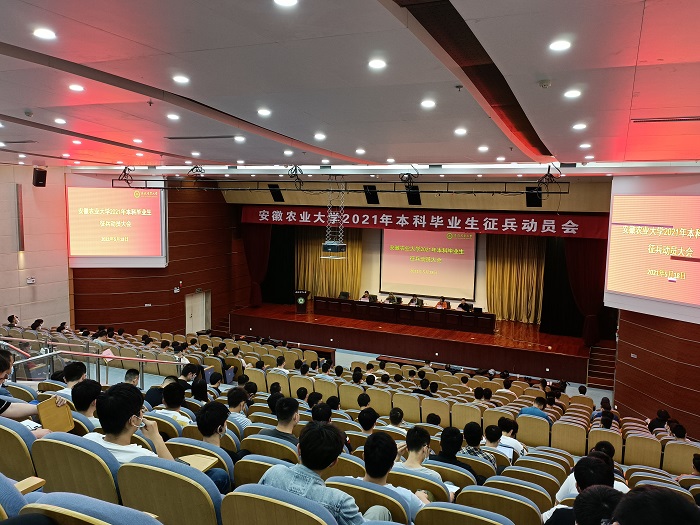 本网讯 为进一步激发毕业生参军报国的热情,扎实做好学校2021年本科应届毕业生应征入伍工作,学校武装部于517日、18日两晚,邀请蜀山区武装部副部长池浩、琥珀社区人武部部长戴前山为我校2021届本科毕业生作征兵政策宣讲培训。校党委副书记裴树东出席会议并作动员讲话。校党委武装部部长姚莉、各学院党委副书记、辅导员代表和2021届毕业班全体男生参加大会,会议由武装部副部长刘柳主持。