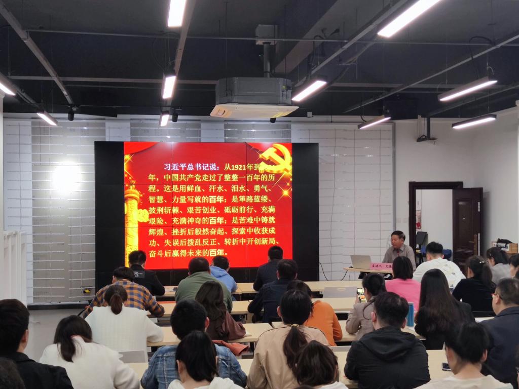 讲座中,尤德胜老师从“新时代高校政治辅导员的基本要求与当务之要”“重走红色之路——学好悟透党史这门必修课”“重温红色之魂——赓续共产党人的精神血脉”“传承红色基因——做四大四为辅导员”等方面,通过丰富翔实的历史资料、形象生动的语言风格,从不同角度解读了党夺取全国政权的制胜法宝,诠释了中国共产党为什么“能”。
