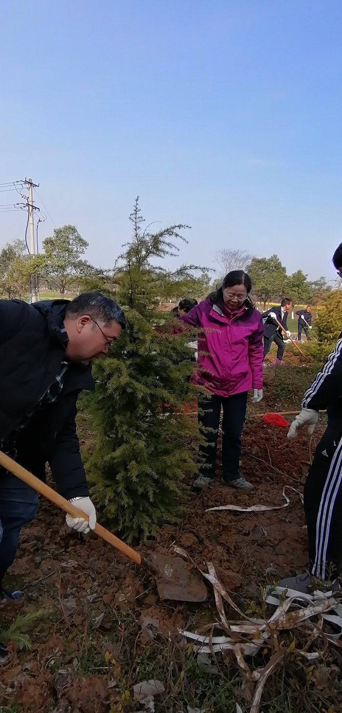 植树现场,农业园管理中心主任洪志生向参加植树的老师们就农业园园区规划、实践教学、科研基地建设等做了介绍,并对各位老师到农业园参加义务植树表示欢迎。在农业园林业专家的指导下,大家领取树苗和种植工具,有序组合,按照挖坑、选苗、栽植、回填、覆土、浇水的流程,热火朝天的劳动起来。经过一个多小时的辛勤劳动,新栽种的树苗在阳光的照耀下亭亭玉立、绿意融融。