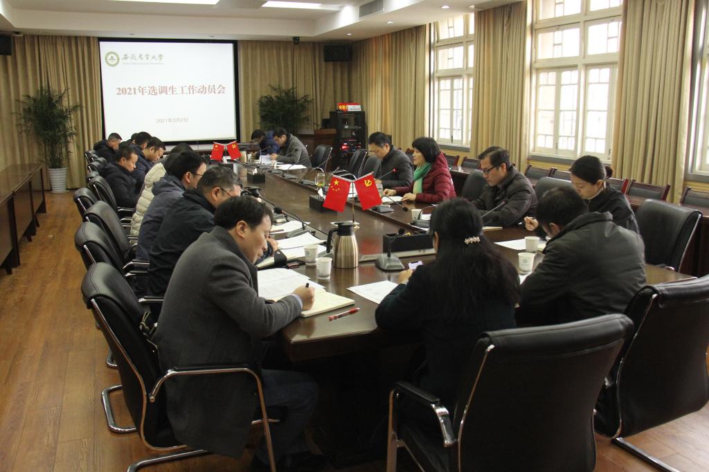 本网讯 3月2日,我校在第三会议室召开2021年选调生工作动员会。党委组织部、学工部(处)、研工部和招生就业处等单位主要负责人,各学院分管学生工作负责人参加了会议。会议由学工部(处)处长姚莉主持。