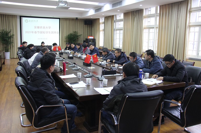 本网讯 2月1日,新春佳节来临之际,学校在第三会议室举行2021年春节留校学生团拜会。校党委副书记裴树东为留校本科学生送上了学校的关怀和温暖,并向他们致以新春的问候。团拜会由校学工部(处)长姚莉主持,相关学院党委副书记、辅导员一起参加了团拜会。