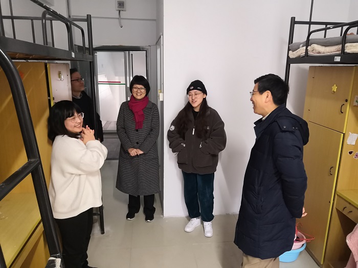 会后,裴树东在学工部(处)负责同志陪同下,走访了留校学生宿舍。