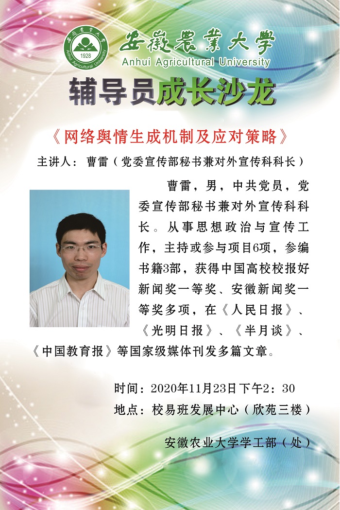 报告会上,曹雷从意识形态工作的地位作用、意识形态领域面临的情况、网络舆情应对机制三个方面深刻剖析了网络意识形态工作的重要性、基本特征和所面临得挑战,以翔实的案例阐释了应对网络舆情的有效策略。他指出,辅导员要深刻领会新时代学生网络思想政治教育工作与意识形态工作的统一性,要做到坚持以生为本、科学理性、积极主动应对网络舆情,把意识形态工作责任牢记于心。会后,与会人员和报告人进行了充分的互动交流,沙龙学术氛围浓厚。