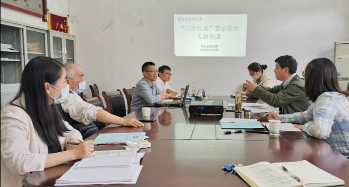 本网讯 5月13日下午,校党委副书记裴树东同志以普通党员身份参加所在学生处党支部学习研讨,并分别围绕“构建人类命运共同体与讲好中国故事”“深化‘三个以案’警示教育”为支部党员讲了一堂生动的党课。