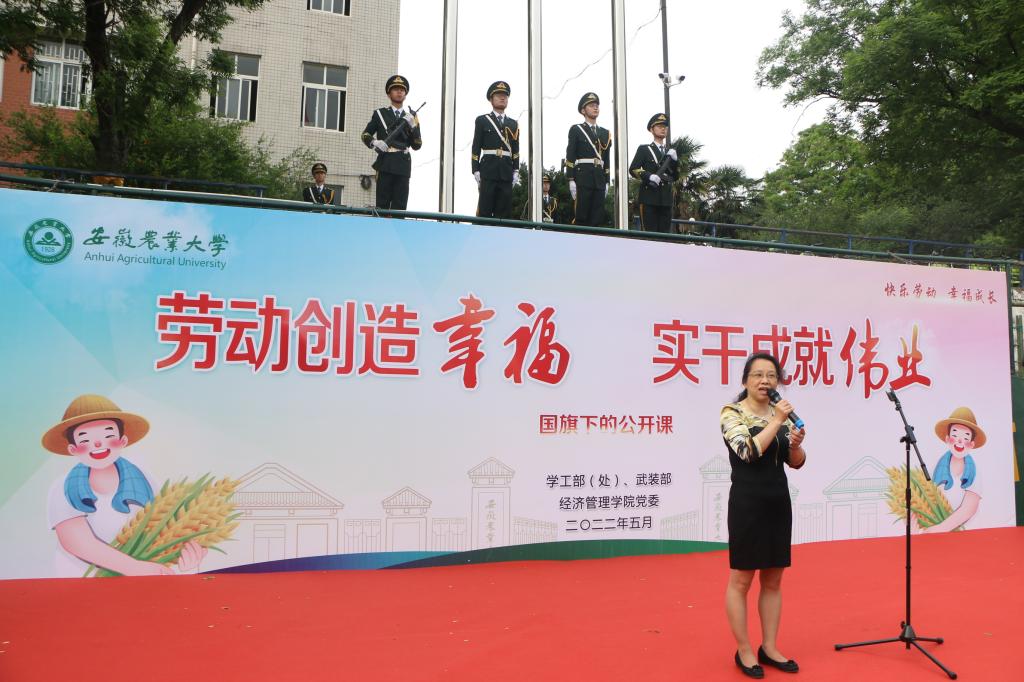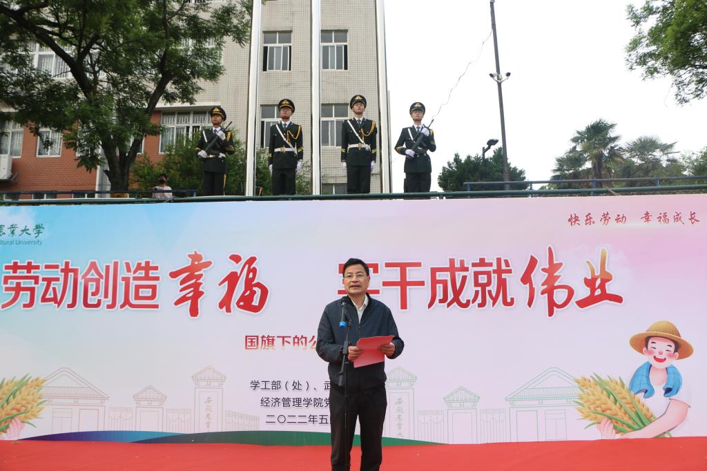 自5月9日开展劳动教育宣传周活动以来,学校组织开展了丰富多彩的系列活动,各个学院结合学科特色、专业特点、学生特性开展了形式多样的劳动教育。 周一早晨的“劳动创造幸福 实干成就伟业”主题升旗仪式上,经济管理学院梅莹副教授给现场的同学们上了一堂生动的公开课,深刻阐述了马克思主义劳动价值论在新时代的重要指导意义,经济管理学院党委书记孙超在最后的发言中,号召同学们要不断增强强农兴农的责任感和使命感,要树立正确的劳动价值观,踔厉奋发、笃行不怠,争做新时代的奋斗者。
