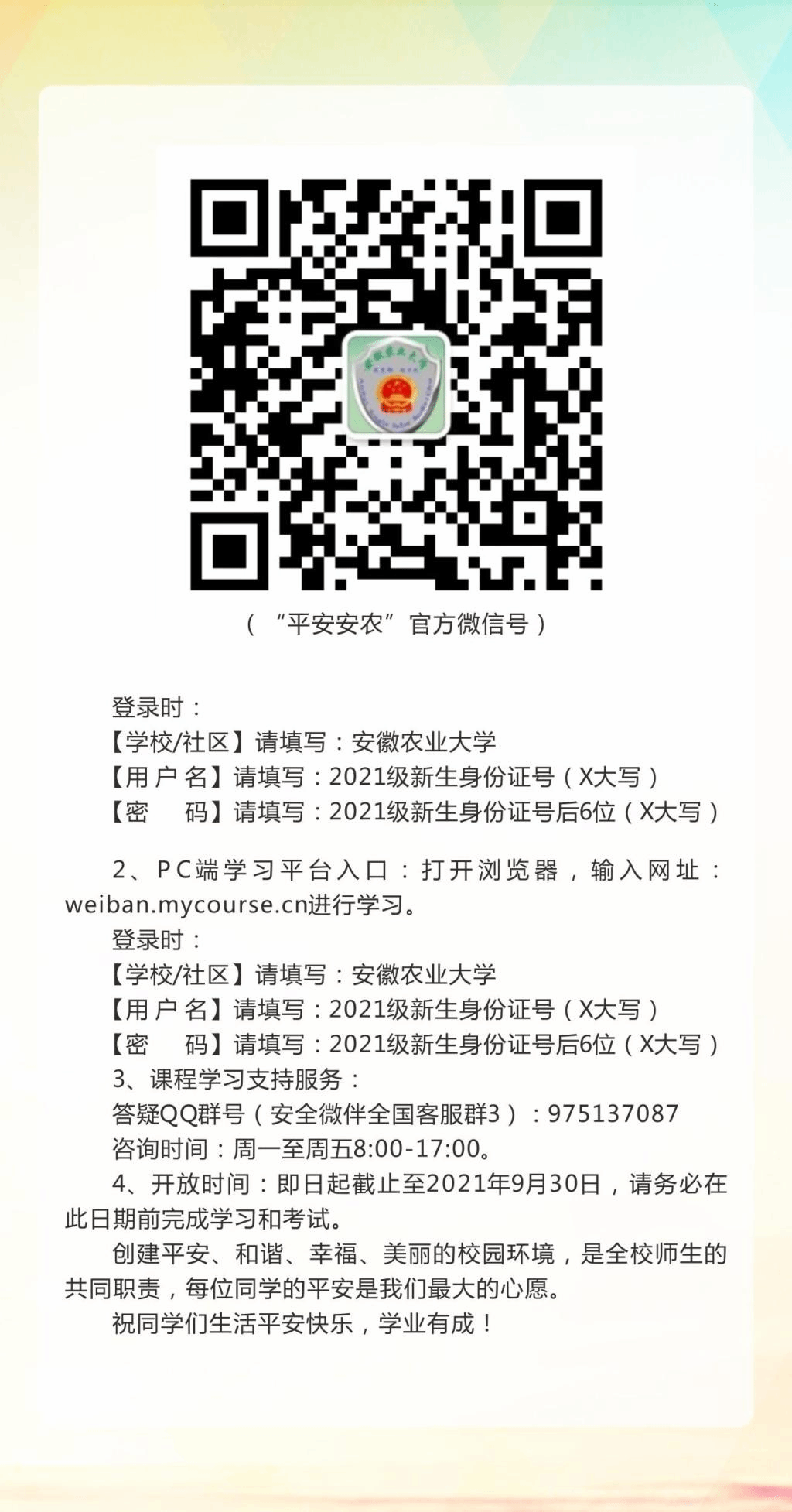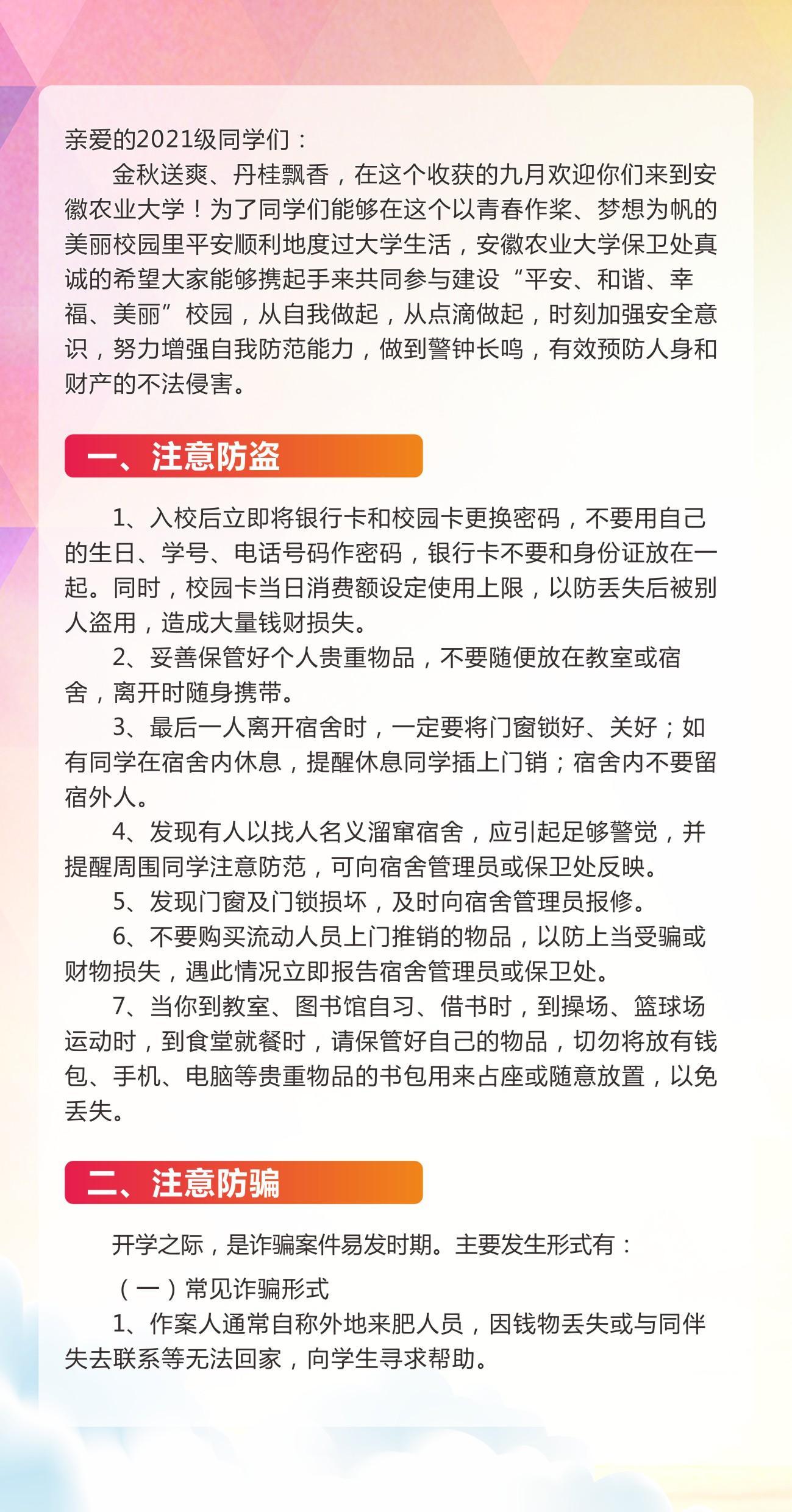 【迎新】安徽农业大学新生安全寄语