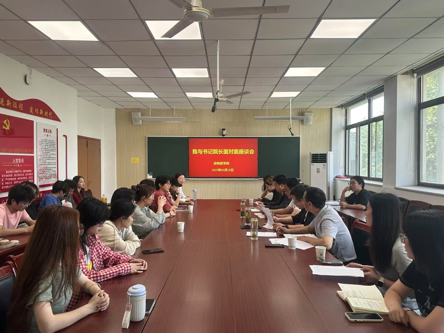 本网讯 4月18日,动物医学院在动医楼306会议室召开“我与书记院长面对面”座谈会。学院党委书记吴永红,院长孙裴,副院长王希春,团学、研究生管理负责老师和各年级、各民族学生代表参加会议,会议由学院党委副书记张锐主持。