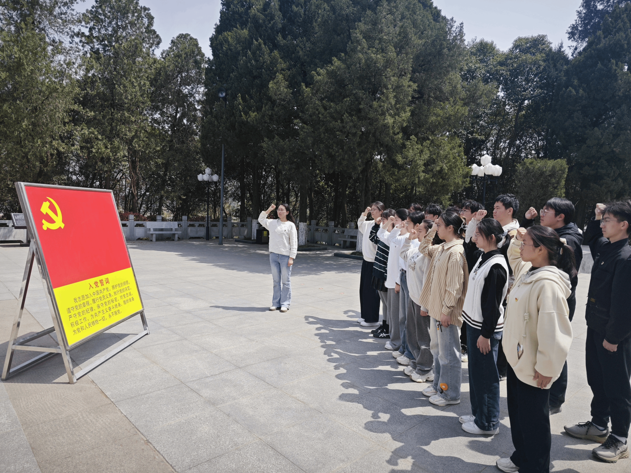 “一寸山河一寸血,一抔热土一抔魂”,在金寨县红军广场,党员先后参观了革命烈士纪念塔与革命博物馆,在老师的讲解下了解了金寨县“将军故里”的革命历史和英雄故事。为表达对先烈们的深情缅怀与崇高敬意,党员们为烈士鲜花,在革命烈士纪念塔前庄严默哀。最后,全体党员整齐列队面向党旗,庄严的举起右手重温入党誓词。红军广场上回荡着党员们铿锵有力的誓言,每一个字都饱含着党员们对党的无限忠诚和为共产主义事业奋斗终身的坚定决心。