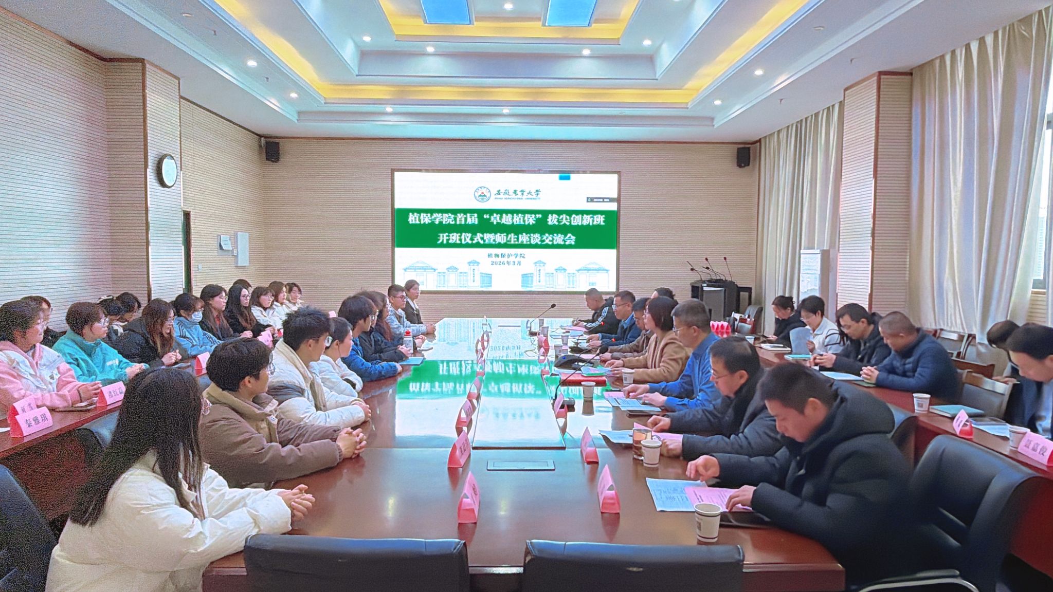 本网讯 3月5日下午,植物保护学院首届“卓越植保”拔尖创新班开班仪式暨师生座谈会在中西部大楼1213室举行。“1+5”农业科技联盟单位代表-西北农林科技大学黄丽丽教授、中国农业大学李虎教授、南京农业大学华修德教授、中国农业科学院植保所闫晓静研究员在线出席开班仪式,校教务处处长汪钟凯教授、校教学督导组高智谋教授、学院班子成员以及创新班全体师生参加会议。仪式由学院党委书记刘柳主持。