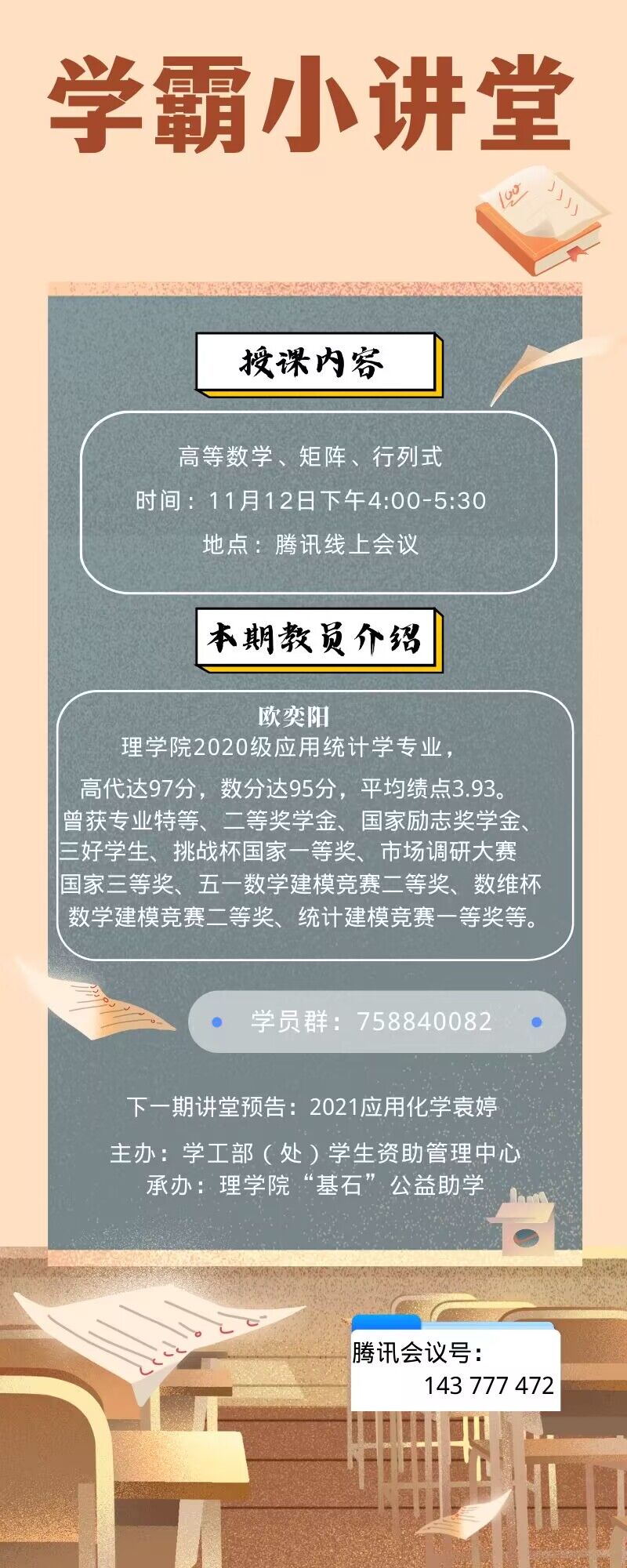 “学霸小讲堂”高数第二讲和英语第一讲课程安排预告