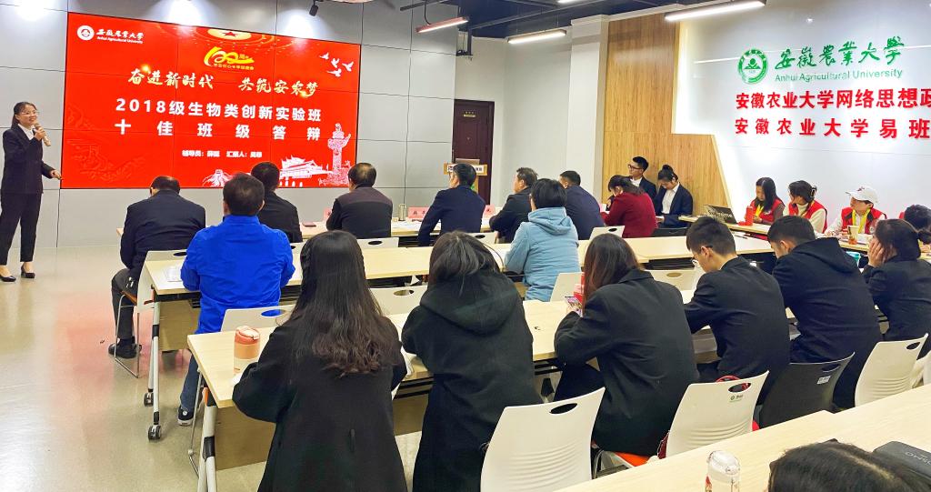 答辩现场同学们重点围绕“学风、考风、班风”建设、主题教育活动开展情况、班级建设特色和成效等方面进行汇报答辩,评委老师结合班级申报材料和现场展示情况进行综合评分。经过激烈角逐,2018生物类创新实验班1班,2018农业资源与环境1-2班等10个班级获得校“十佳班级奖”,2019土木工程1班,2019应用统计学2班等10个班级获得校“十佳班级提名奖”。