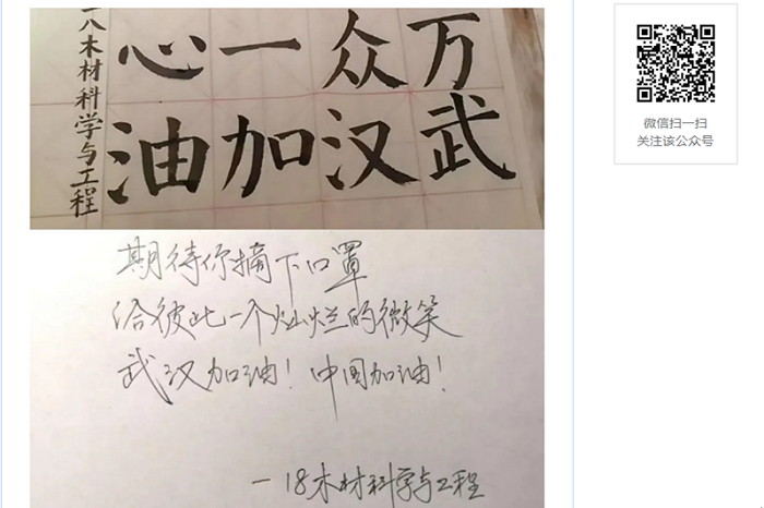 辅导员班主任积极组织本专业开展系列线上主题教育工作,如18木材、19园林班级手写、录制视频为一线防疫工作者献上祝福;18林学组织线上防疫知识考试,关注身心健康等。