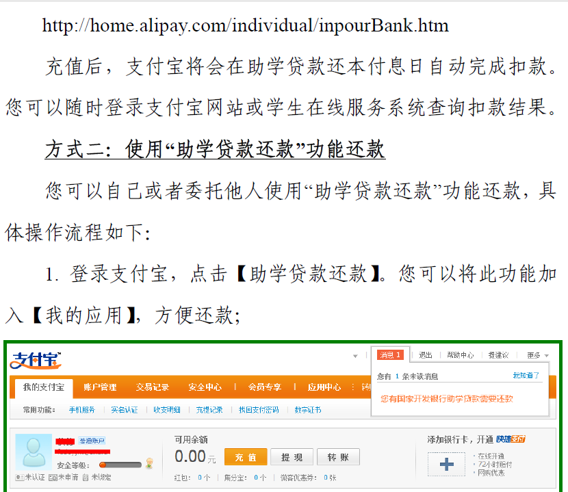 安徽省国家开发银行生源地信用助学贷款支付宝使用指南