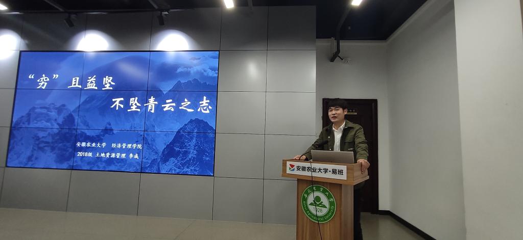 会上,农学院2018级现代青年农场主创新创业试验班的徐怀玉同学从专业学习、学科竞赛、志愿服务、保研经历等角度与同学们进行了经历分享;经济管理学院2018级土地资源管理专业的李成同学则与同学们分享了如何直面人生逆境、绽放自我;如何心存感激,回报社会;如何坚持梦想,铸就辉煌。两位同学用自身故事感动和激励与会同学,精彩报告赢得同学们的一致好评,给人信心和力量。