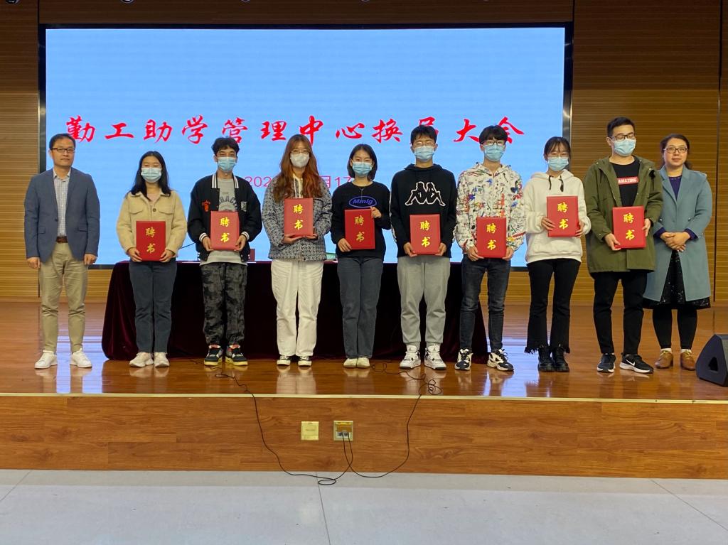 会上,第十九届勤工助学管理中心主任王大勇作工作报告,张冰涛代表第二十届勤工助学管理中心全体成员进行表态发言。会上还为第十九届勤管中心优秀学生干部和全体成员颁发了聘书。