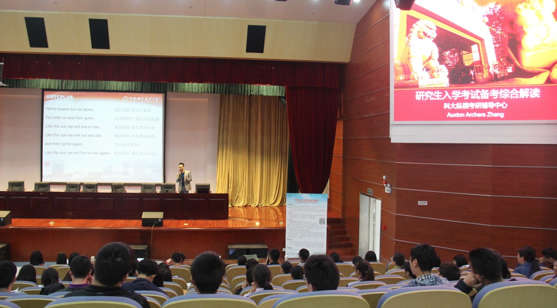 本网讯 10月12日下午,由校学生资助管理中心主办、“科大纵横”协办的研究生入学考试备考深度指导公益讲座在图书馆一号报告厅举行。本次讲座邀请到中国科学技术大学数学系汪琥庭教授、中国科学技术大学第十一届MBA联合会副主席、“科大纵横”联合创始人张春生等专家授课。我校2004届校友、安农大校友企业家联合会秘书长、“科大纵横”联合创始人张志军,学生资助管理中心主任刘柳、招生就业处和校团委相关负责老师等出席了讲座。