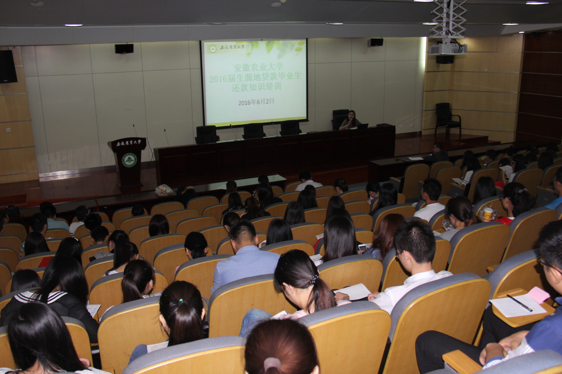期间,校学生资助管理中心负责老师从助学贷款概况、毕业生还款注意事项及建议三方面为同学们详解了还款确认、提前还款、继续攻读学位合同变更等具体事宜。教育活动现场为每位毕业生发放了《安徽农业大学2016届生源地贷款毕业生须知》等材料。活动最后,参会老师还解答了部分学生现场提出的一些疑问。