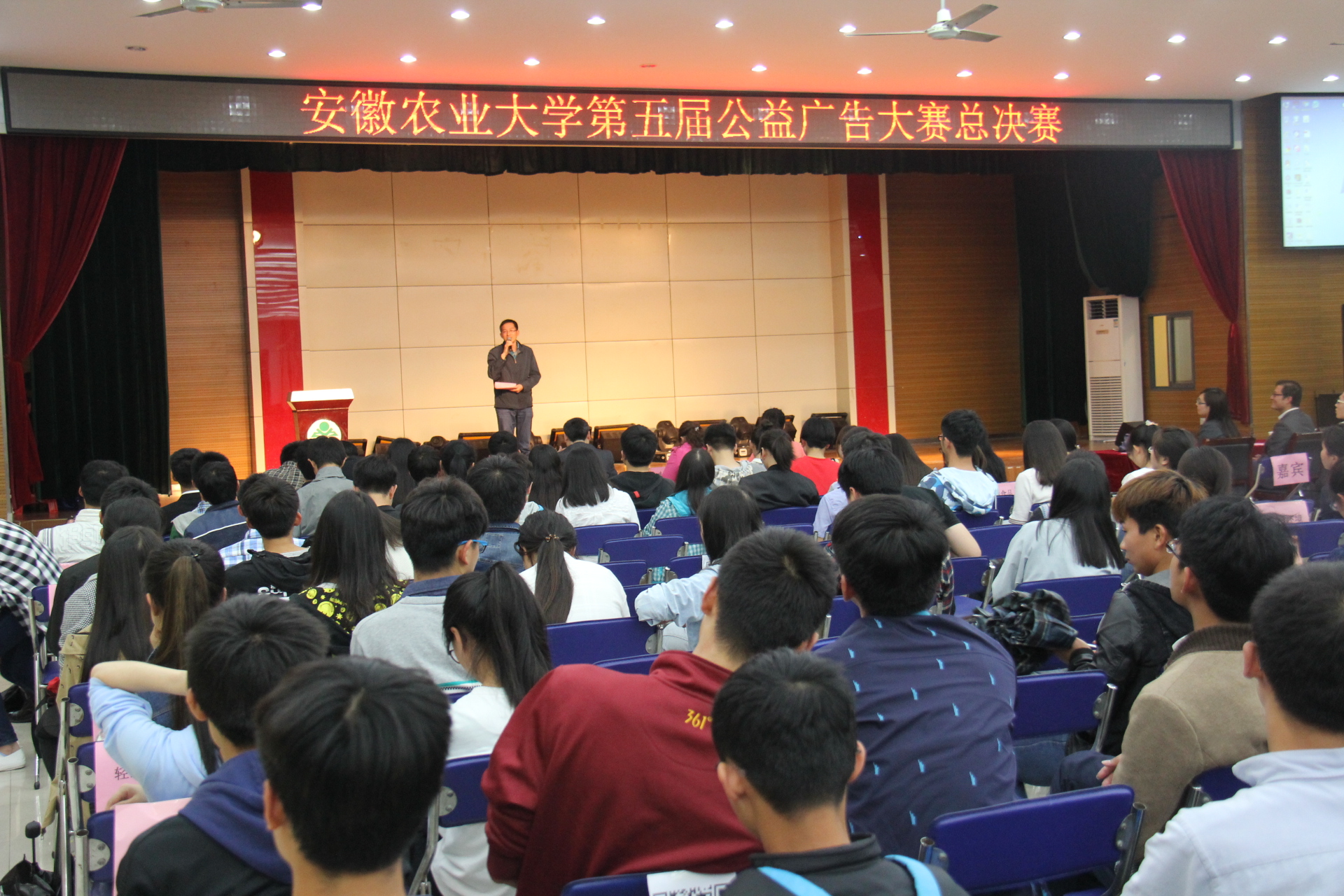 本网讯 5月8日,安徽农业大学第五届公益广告大赛决赛在欣苑四楼学生活动中心落幕。党委宣传部、学工部(处)、招生就业处、总务管理处、学生公寓管理中心、校团委等单位负责同志担任评委。进入决赛学院党委副书记、各学院资助工作负责老师以及近500名受助学生观看了比赛。