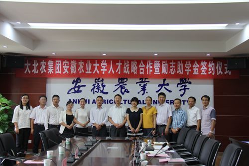 本网讯9月18日上午,我校在勤政楼第三会议室举行“大北农集团安徽农业大学人才战略合作暨励志助学金”签约仪式,大北农作物科技产业水稻集团苏皖特区总经理王石、苏皖特区管理部经理朱囡囡、大北农集团安徽区创业人才中心经理李春霞、大北农作物科技产业绿色农华集团创业人才中心经理程鹏,我校学生处处长彭庆刚、财务处副处长王薇及研究生学院、植物保护学院、农学院、动物科技学院、园艺学院党委副书记参加了仪式。仪式由校学生资助管理中心主任刘柳主持。