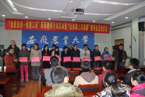 本次活动是由合肥宏盛美的空调销售有限公司出资180万,用于援建两所希望小学和资助19所高校的2000名大学生每人500元寒假回家路费,其中我校共有200名学子获得此项路费资助。
