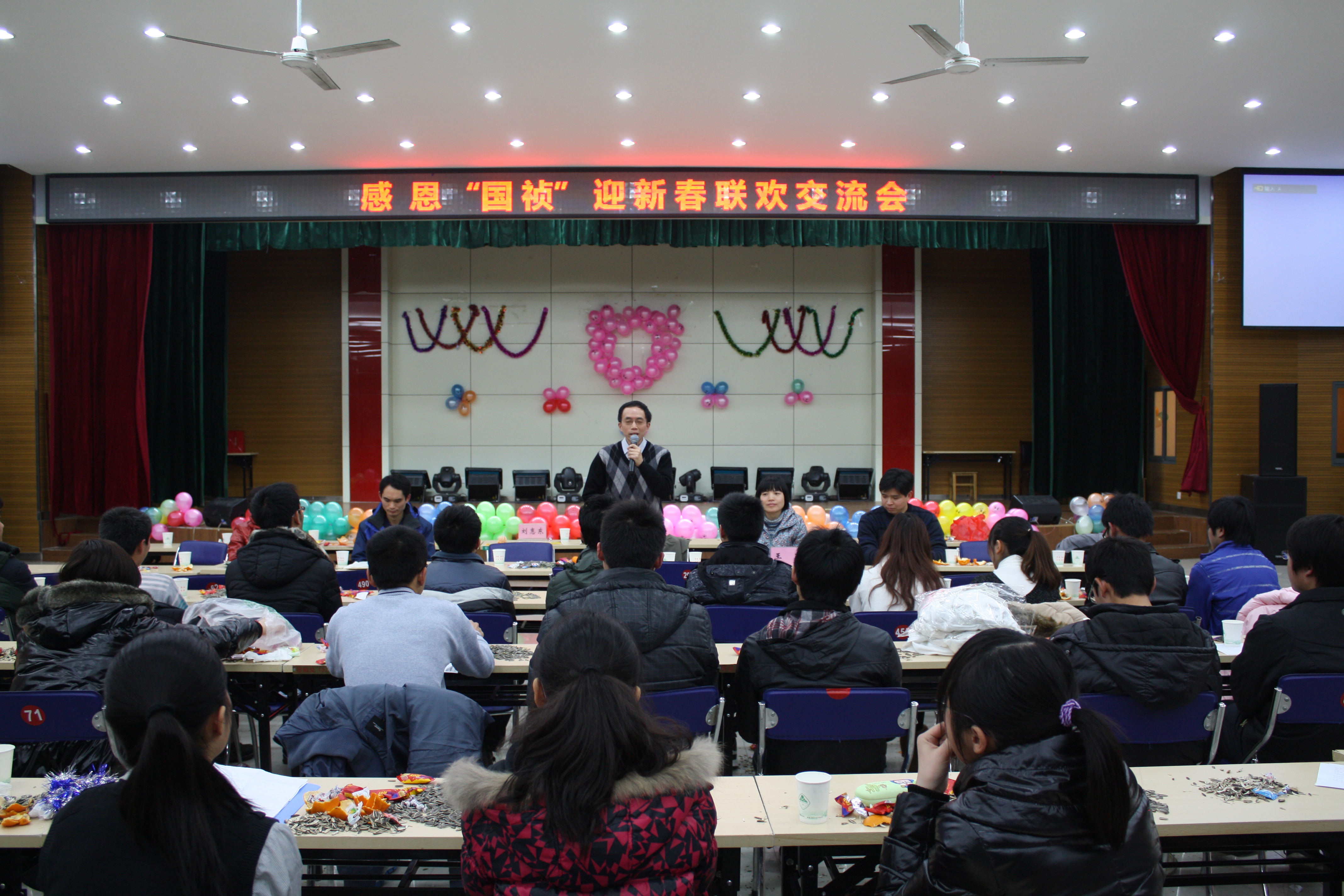 1月13日下午,我校60名“国祯学子”在欣苑餐厅四楼学生活动中心多功能厅开展了迎新春联欢交流会,安徽国祯集团股份有限公司副总裁、党委副书记彭波,校学生处处长刘惠东,校学生处副处长王琼,“国祯班”特聘辅导员江海波老师等参加了联欢交流会。