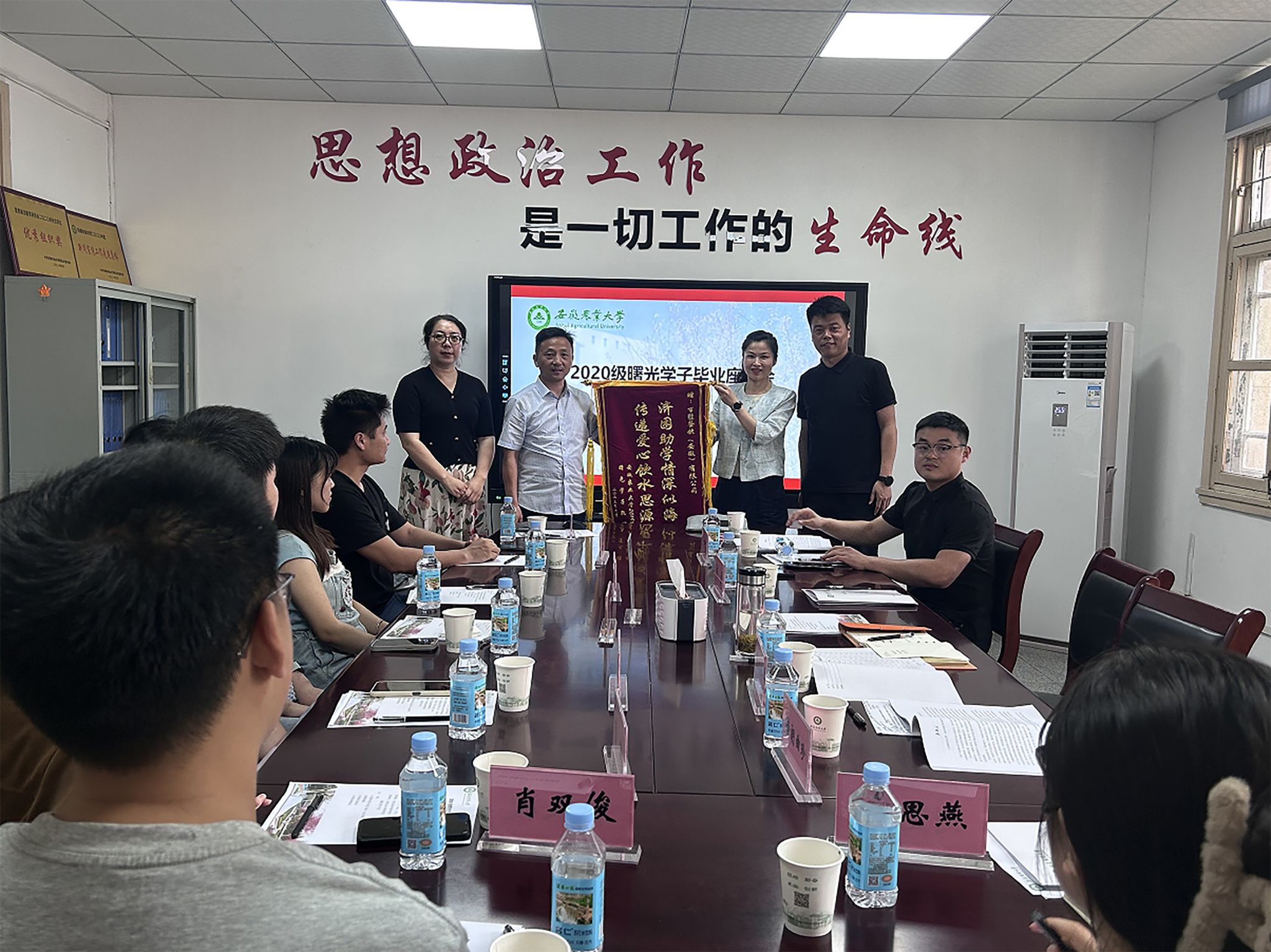 任琪代表我校受资助学生向百胜餐饮(安徽)有限公司赠送了锦旗。与会领导和老师分别对2024届曙光学子在校期间展示的自立自强、励志成才的优秀品质予以高度赞扬,对同学们取得的优异成绩予以祝贺,希望同学们能够始终持续学习、保持初心、永葆定力,开拓进取、积极乐观;勉励同学们永怀赤子之心,满怀着爱与希望,传播温暖与阳光。