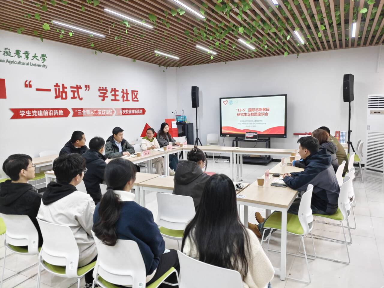 12月5日,正值第39个国际志愿者日,学院特别举办研究生支教团座谈会,学院党委书记吴辰华,党委副书记、纪委书记李南飞,历届研支团志愿者代表,师生代表参加活动。活动现场,研支团志愿者代表分享了支教经历中的深刻感悟与成长收获,并与一线支教同学连线,直观地展示了志愿者工作和生活场景。“彩蛋”环节,往届成员和支教学生线上重聚,互赠祝福,气氛温馨融洽。随后,领导老师及新老研支团成员写下寄托着希望与祝福的纸条和信件,共同存入时光胶囊,见证学院支教工作的历程与学生的成长足迹。现场发放了研支团宣传手册及奖品。
