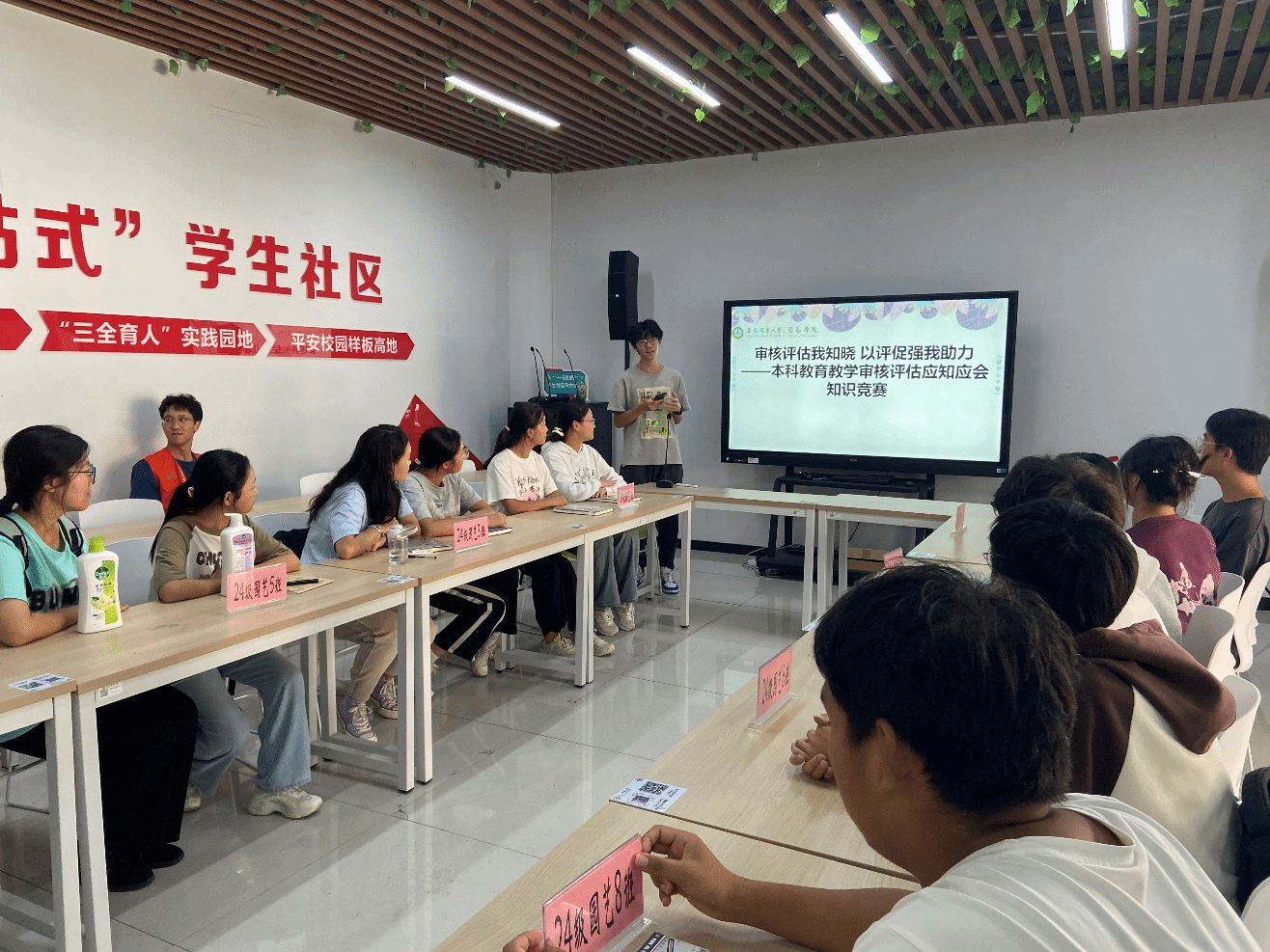 评估竞赛促学风。为全面迎接本科教育教学审核评估工作,引导园艺学院全体本科生了解审核评估知识,10月11日下午,园艺学院在“一站式”学生社区服务中心举办审核评估知识竞赛,花荣越老师担任活动负责人。竞赛内容涵盖了本科教育教学审核评估的相关知识,旨在营造浓厚的“人人关心评估、人人了解评估、人人参与评估”的迎评促建气氛,进一步增强我校学生参与本科教育教学审核评估工作的责任感和使命感。(文/图/花荣越 编辑/何仁婷 预审/陈公伟 审核/赵冠艳)