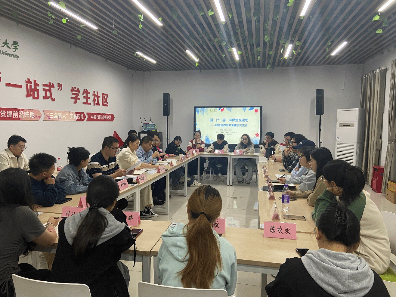 “园汁园味”话成长。为了同学们能够深入了解园艺专业,10月8日下午,园艺学院在“一站式”学生社区服务中心开展联合培养政策解读座谈会,学院党政领导赵冠艳、陈公伟、朱晓彪、殷学仁出席,2024级联合培养研究生参加会议。会上,陈公伟向联合培养学生详细解读了联合培养政策,详细解读培养目标、课程设置、实践环节等内容。会议邀请中国农科院蔬菜花卉研究所博士后、2018级学院联培生戴昀作经验分享。活动现场氛围火热,联合培养学生积极提问互动,表达了对即将开启的新生活美好愿景以及学习期望。