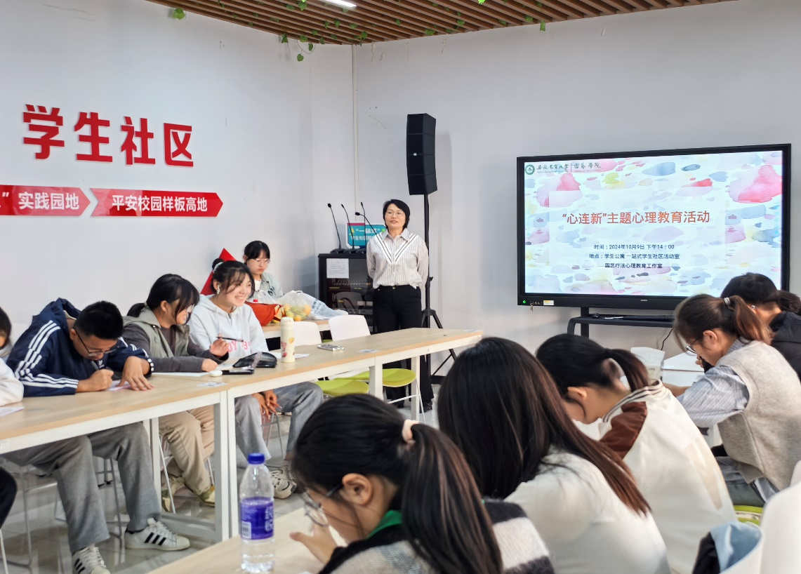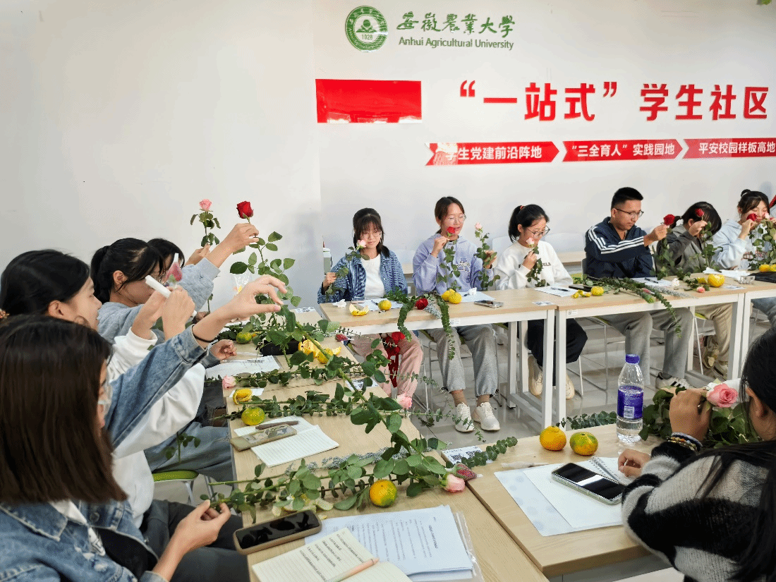 “园艺疗法”润心田。为守护大学生心理健康,普及心理健康知识。10月9日下午,园艺学院在“一站式”学生社区服务中心举办“心连新”心理教育主题活动。活动现场,主讲人王华老师以园艺疗法为媒介,开展手工插花活动,帮助学生们运用园艺疗法在生活中调节情绪、感知美好,有助于大学生更好地识别和应对心理问题,促进大学生的心理健康发展。