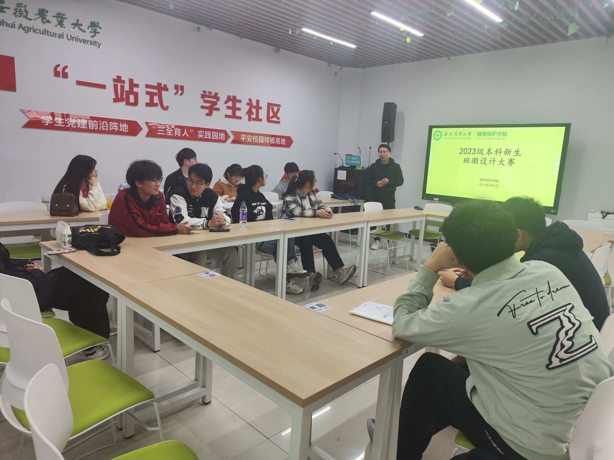 青听·讲堂—用创意绘制最美班徽。为增进本科新生班级的凝聚力,培育良好的班风学风,展现新生班级的风采特色,4月7日中午,学院在“一站式”学生社区开展“青听·讲堂”为主题的新生班徽设计大赛,结合网络投票和现场答辩展示评选出获奖作品。各班学生代表围绕班徽的设计思路和寓意,分享了班徽设计过程,阐述了班级的班训、特色和规划,为争创先进集体奠定了奋斗目标。