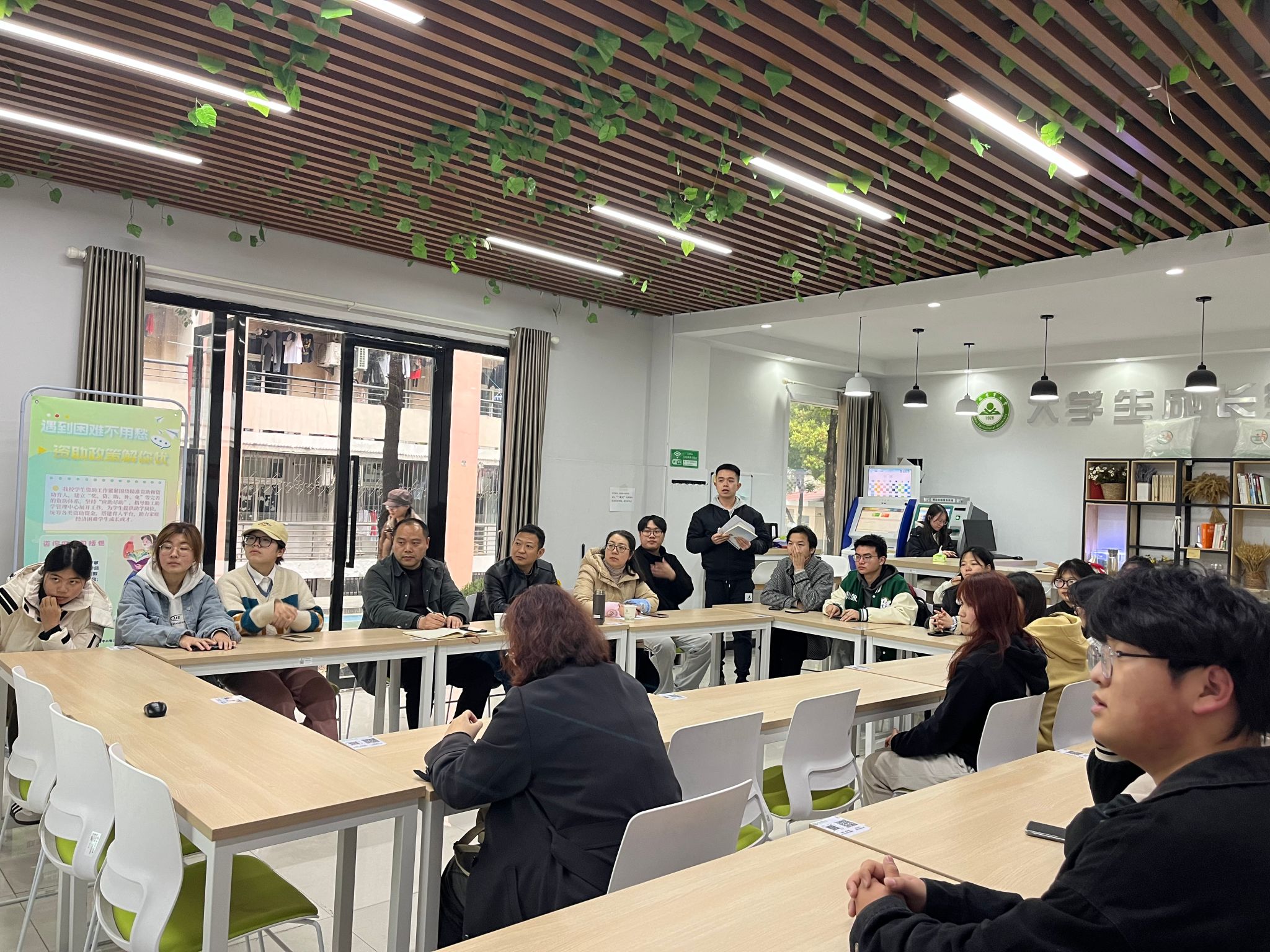 活动中,吕大鹏对校学生资助工作、合肥市医保相关政策进行宣传解读。他强调,同学们要正确看待各项资助政策,常怀感恩之心,诚信做人,积极进取,在自我砥砺中实现人生价值。在答疑环节,面对同学们的提问,他耐心解答,精准传达政策,帮助同学们解决困扰。学院资助工作经办人刘云介绍了国家及学校出台的各项资助政策,并从申请条件、认定标准、评议程序、资助范围等方面对国家励志奖学金、国家助学金、国家助学贷款、勤工助学、临时困难补助、学费减免、退役士兵教育资助等进行了详细解读。