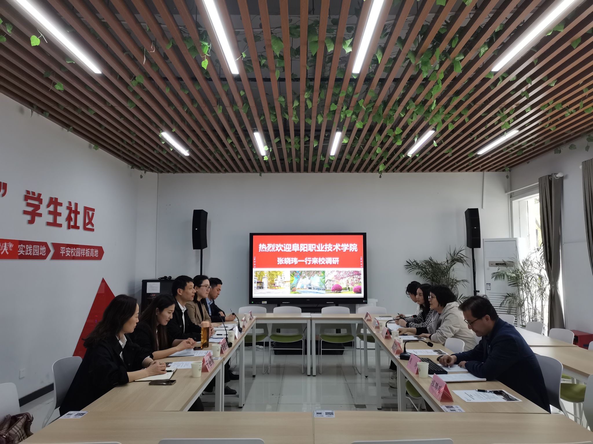 会上,姚莉介绍了我校“一站式”学生社区建设的条件和运行机制,张晓玮介绍了阜阳职业技术学院目前“一站式”学生社区的建设情况以及学生工作。周涛围绕“践行‘一线法则’,推动形成三全育人新格局”详细介绍了我校“一站式”学生社区运行情况。双方围绕党建、“一站式”学生社区建设、校园文化等进行了充分交流。